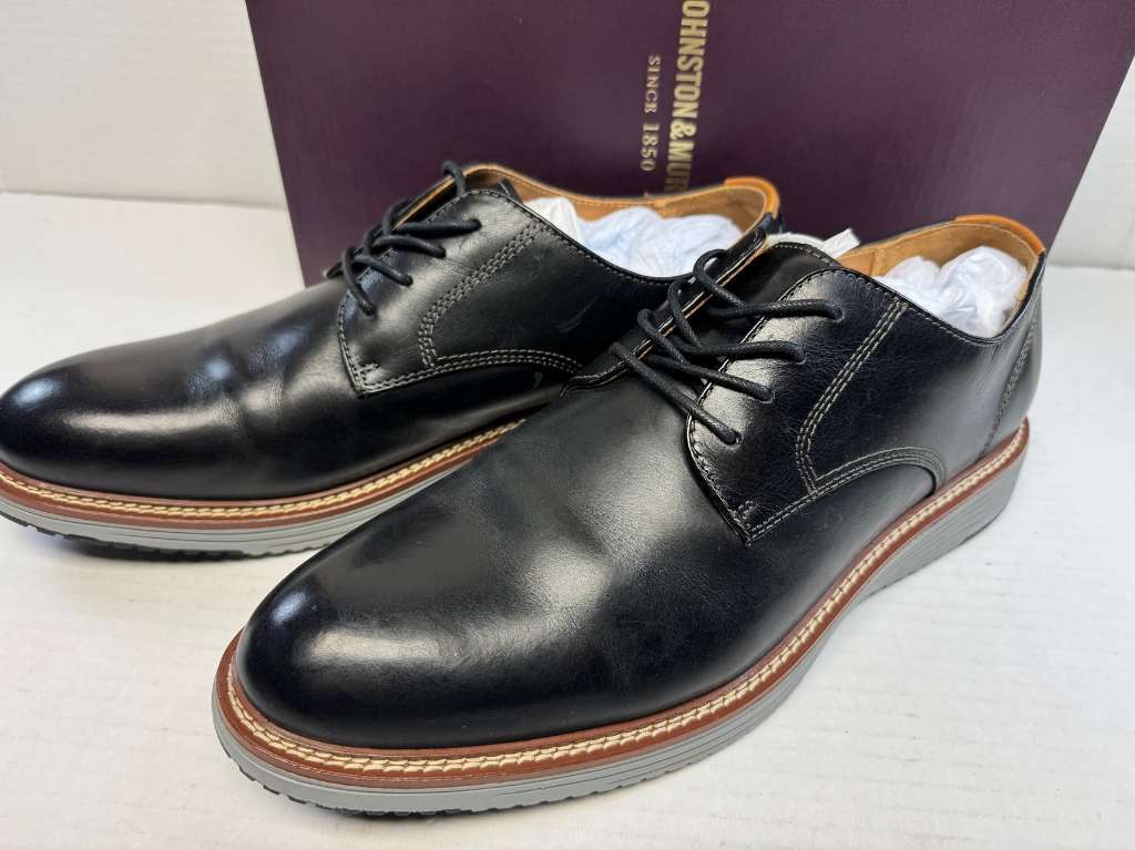 Johnston Murphy Upton Plain Toe Lace Up Dress Shoe, (Size:10 Wide), Black Full Grain