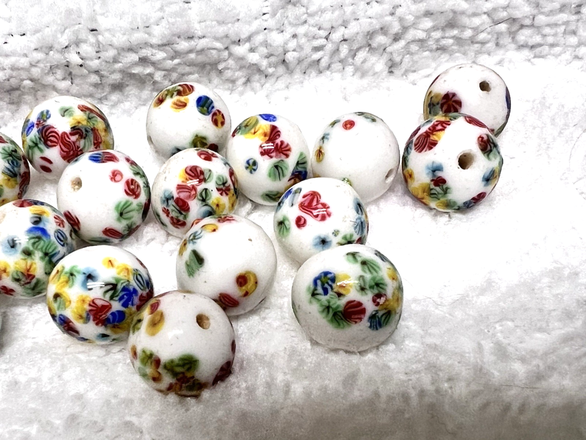 18 Vintage Art Glass Millefiori Beads White Glossy w Rainbow of Color 1/2 In RND Just shy of 1.2" handmade so they vary slightly