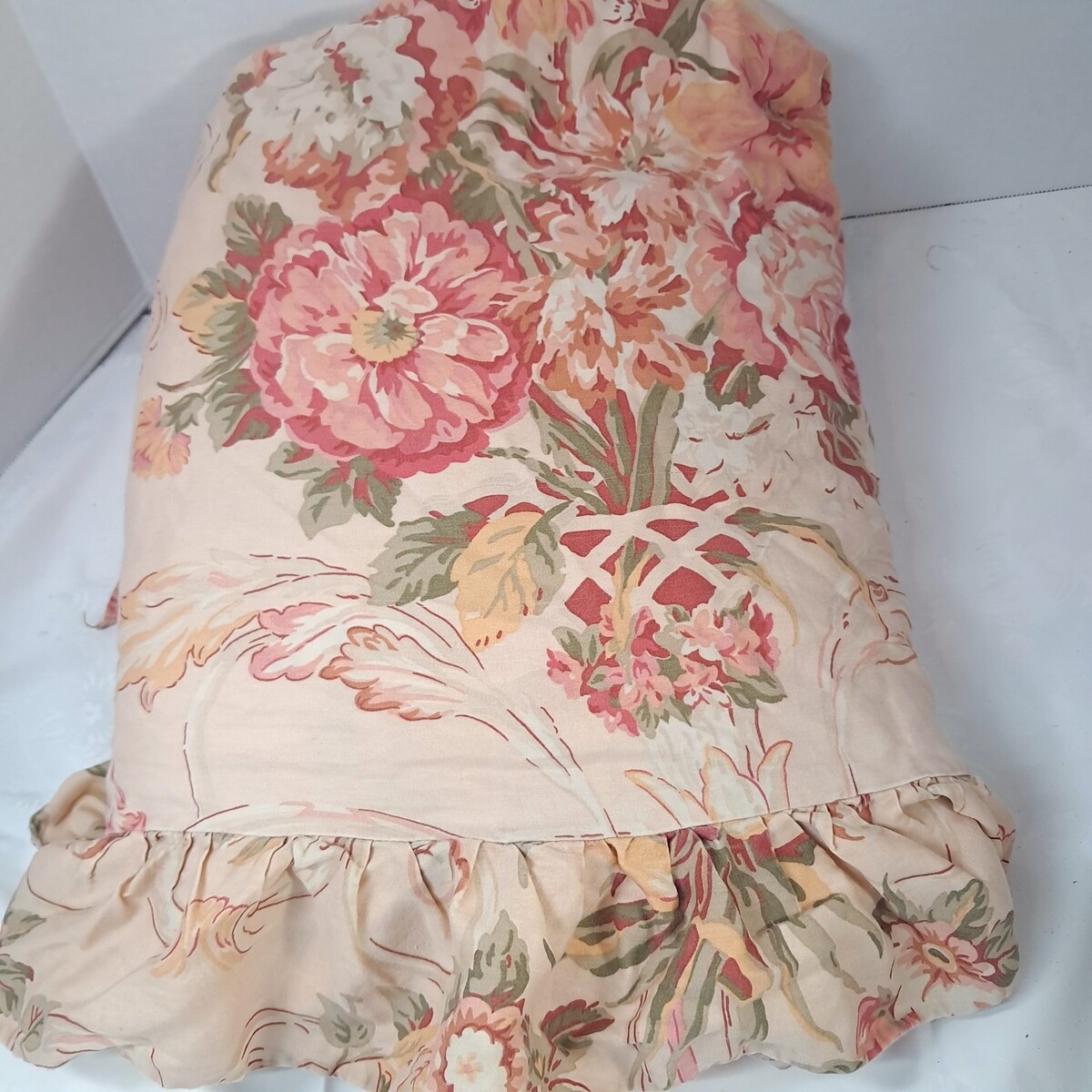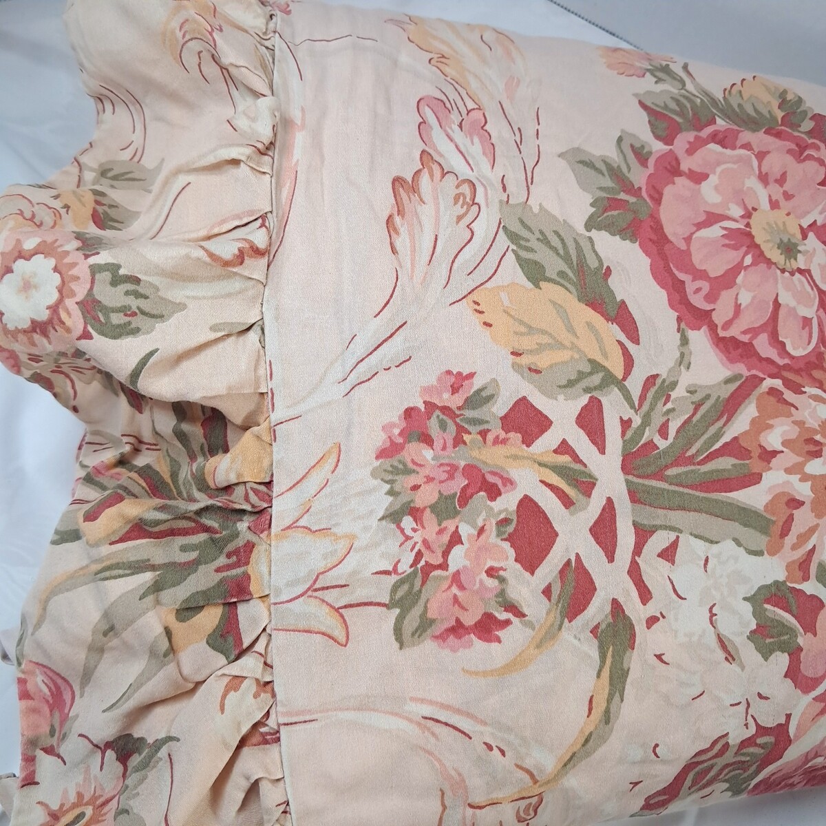 RALPH LAUREN HOME GUINEVERE FULL Flat sheet ruffled Floral French Country tan