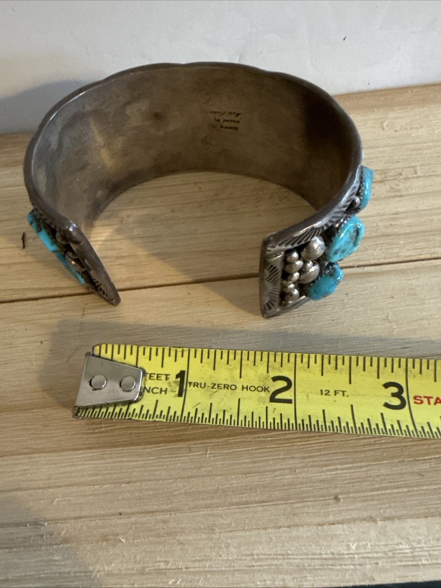 Vintage Signed Marc Antia Navajo Turquoise Cluster Cuff Bracelet Sterling Silver