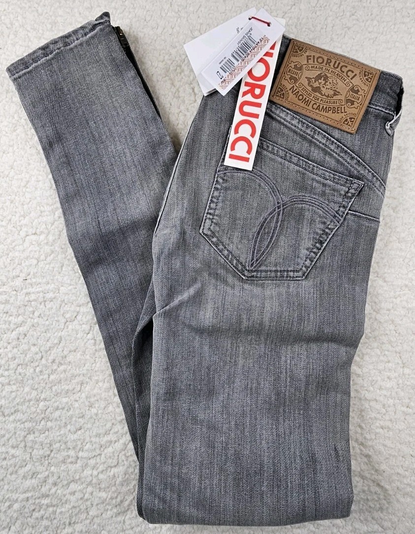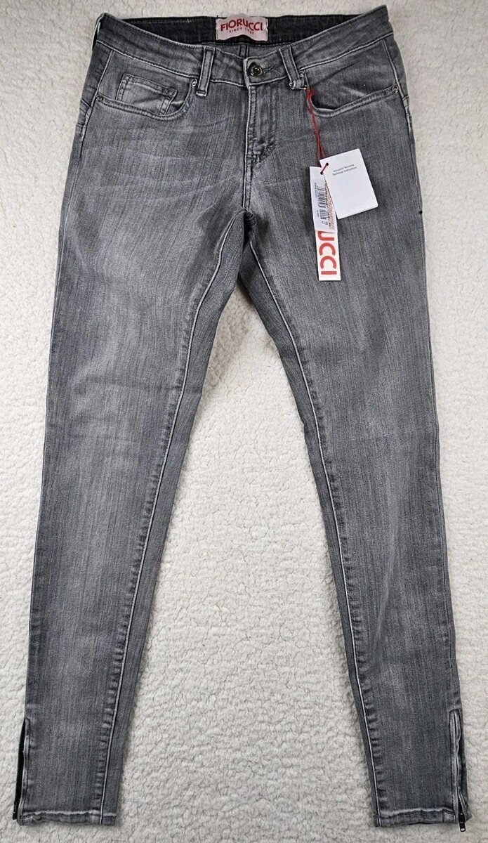 Fiorucci Skinny Fit Womens Jeans Grey Zippered Ankle Size 27 Waist