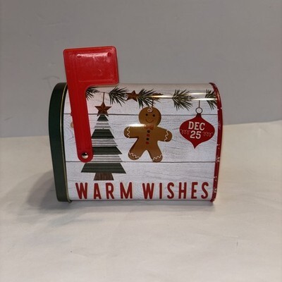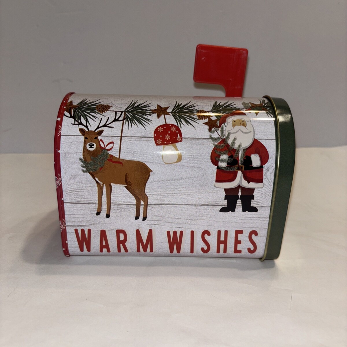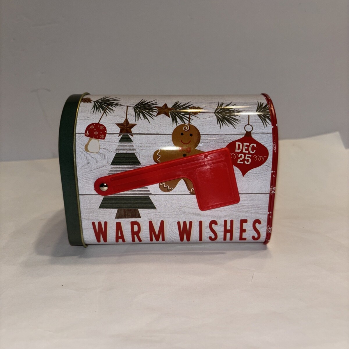 Warm Wishes Holiday Christmas Mailbox Shaped Tin Container (SHIPS IN 24 HOURS)