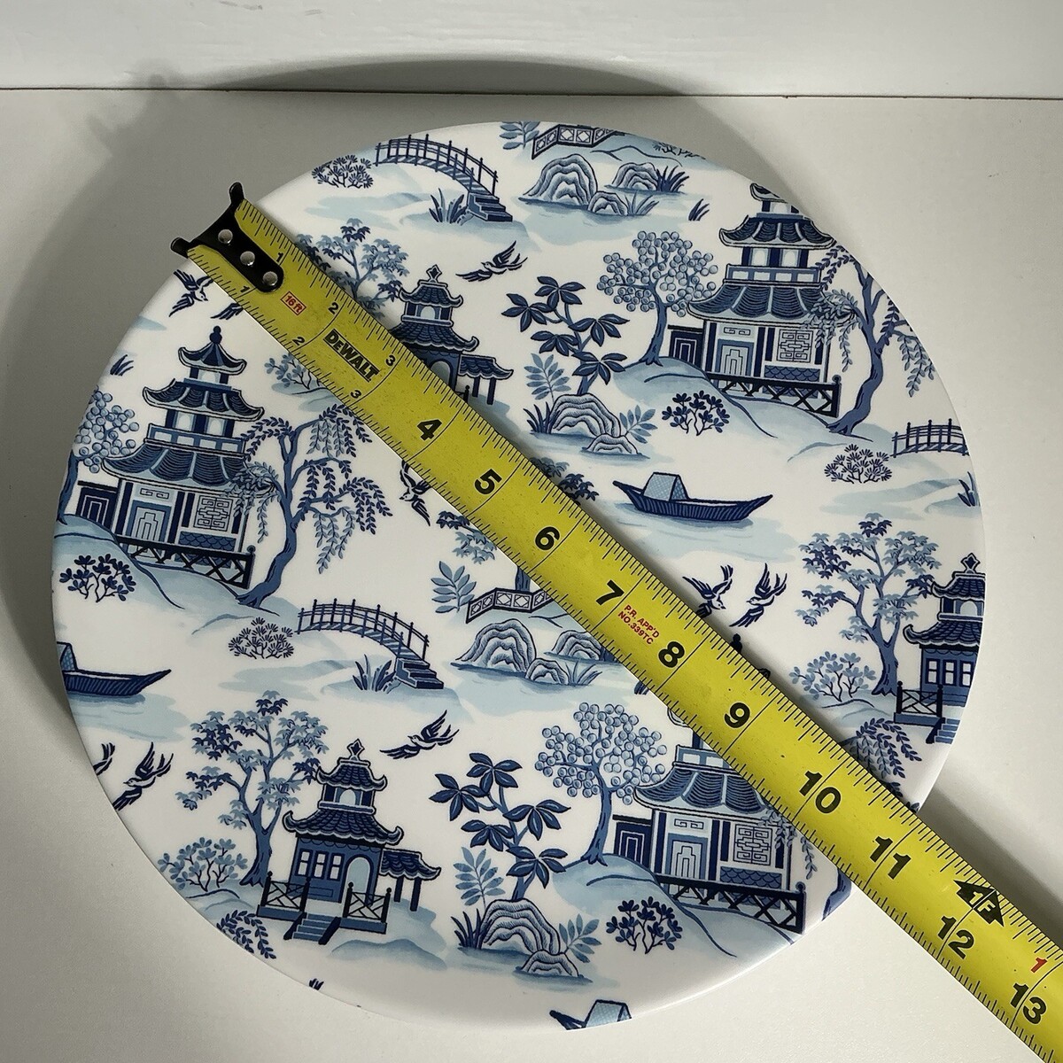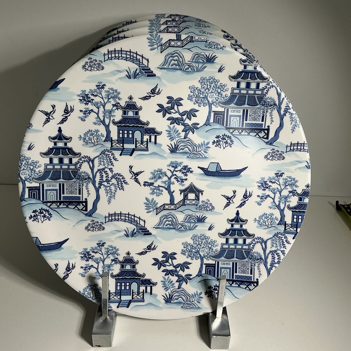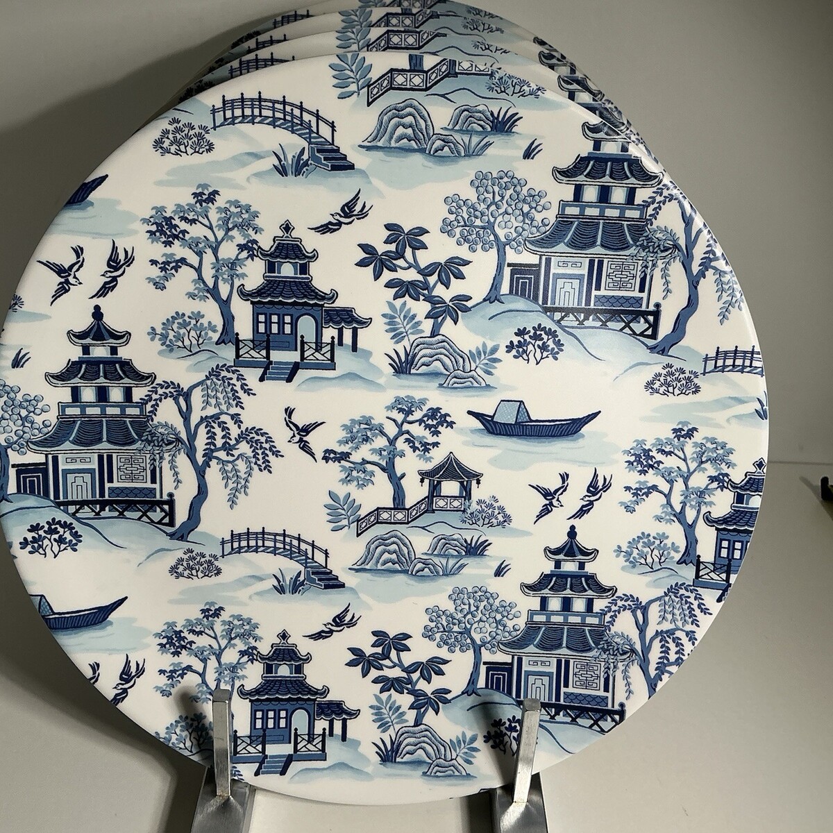 SHABBY CHIC 4 Melamine Blue Willow Asian Pagoda 11" Dinner Plates New