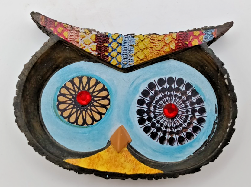 Lori Siebert,Owl Face Soap Dish, Hand painted and ad on Parts, 5-1/2" X 3-1/2"