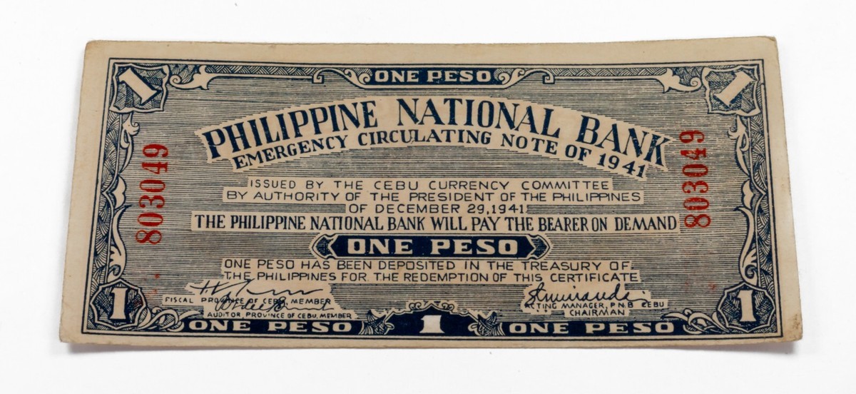 1941 Banca nazionale filippina di Cebu 1 peso, (P# S215)