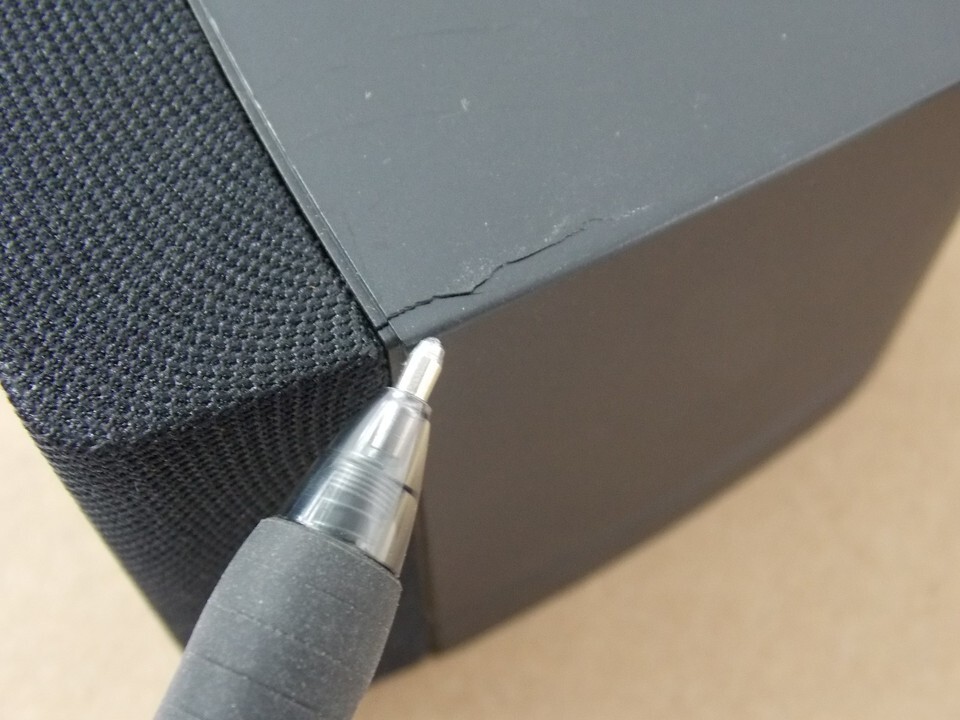one speaker has a little crack in the plastic housing on one edge just cosmetic and does affect functionality, see pics thanks..