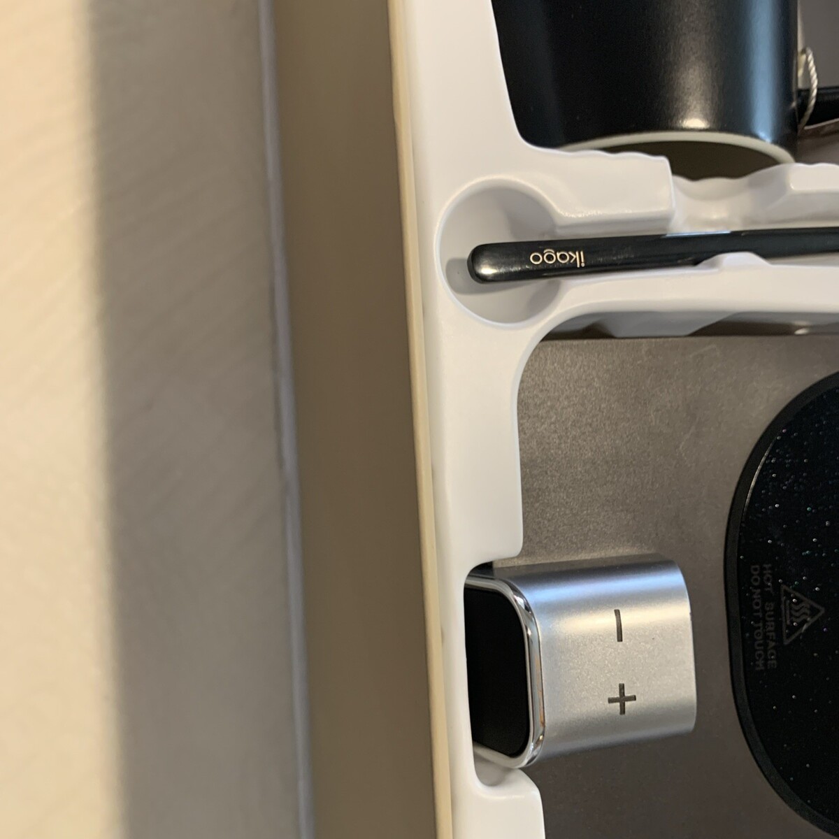 The Smart Heated Coffee Mug Warmer Mug Set by ikago is a sleek black aluminum mug warmer with an auto shut off feature, making it convenient and energy-efficient. It has a capacity of 15.2 fluid ounces and operates on 120 volts with a wattage of 75 watts. The set includes one tray and is designed to keep your coffee or tea at the perfect temperature while on the go. Its compact dimensions make it easy to use at home or in the office, adding a touch of sophistication to your daily routine.