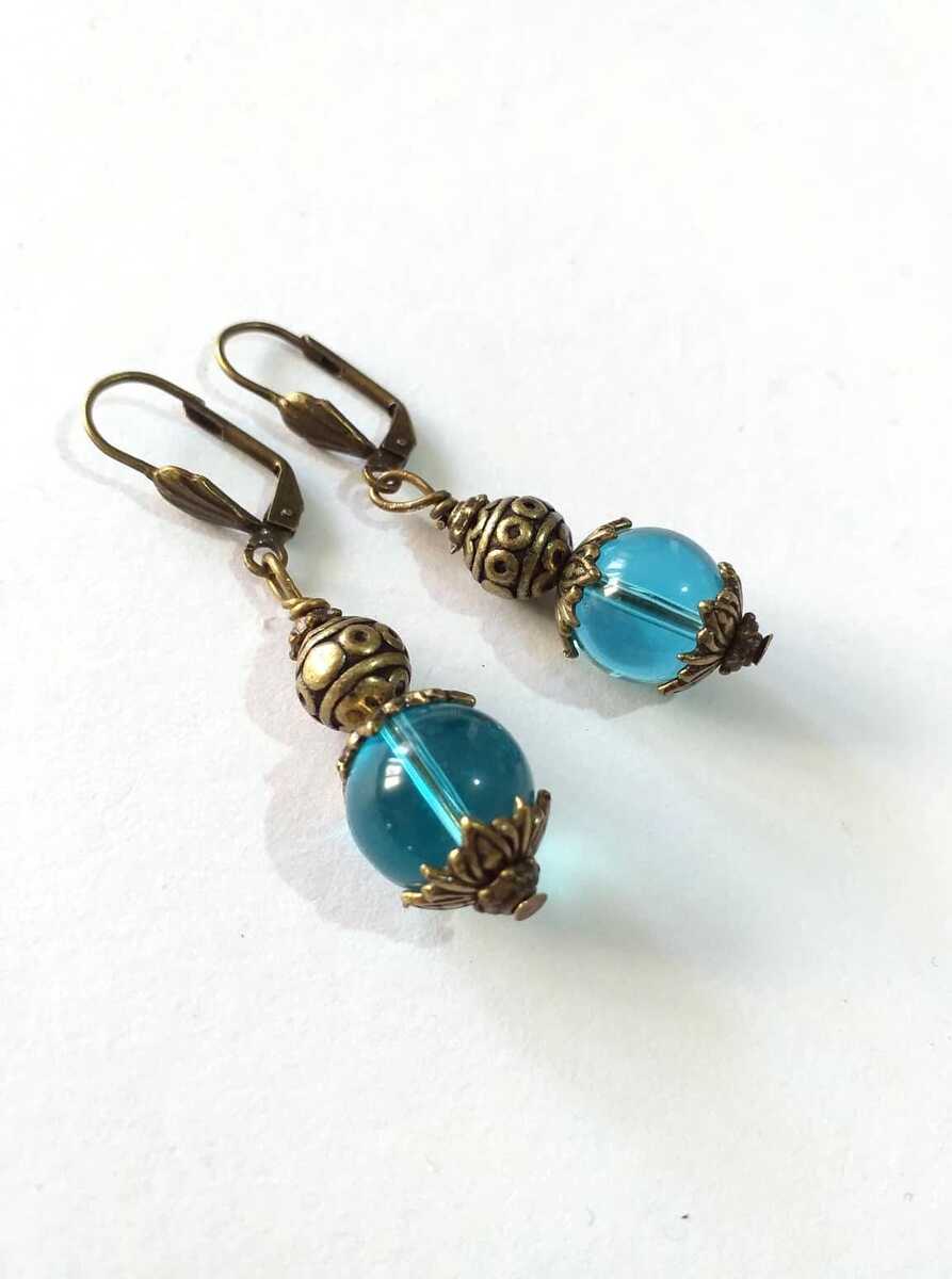Material :blue glass beads(12 mm), bronze ornaments beads, bronze tone metal chain
