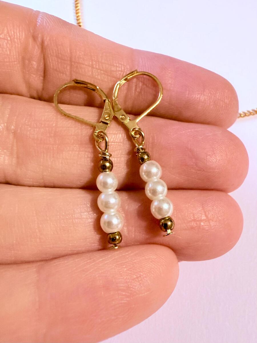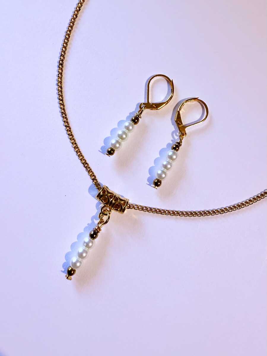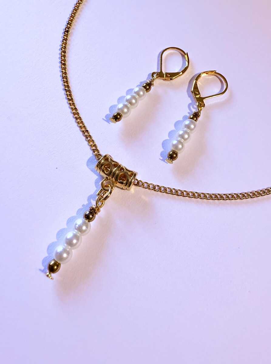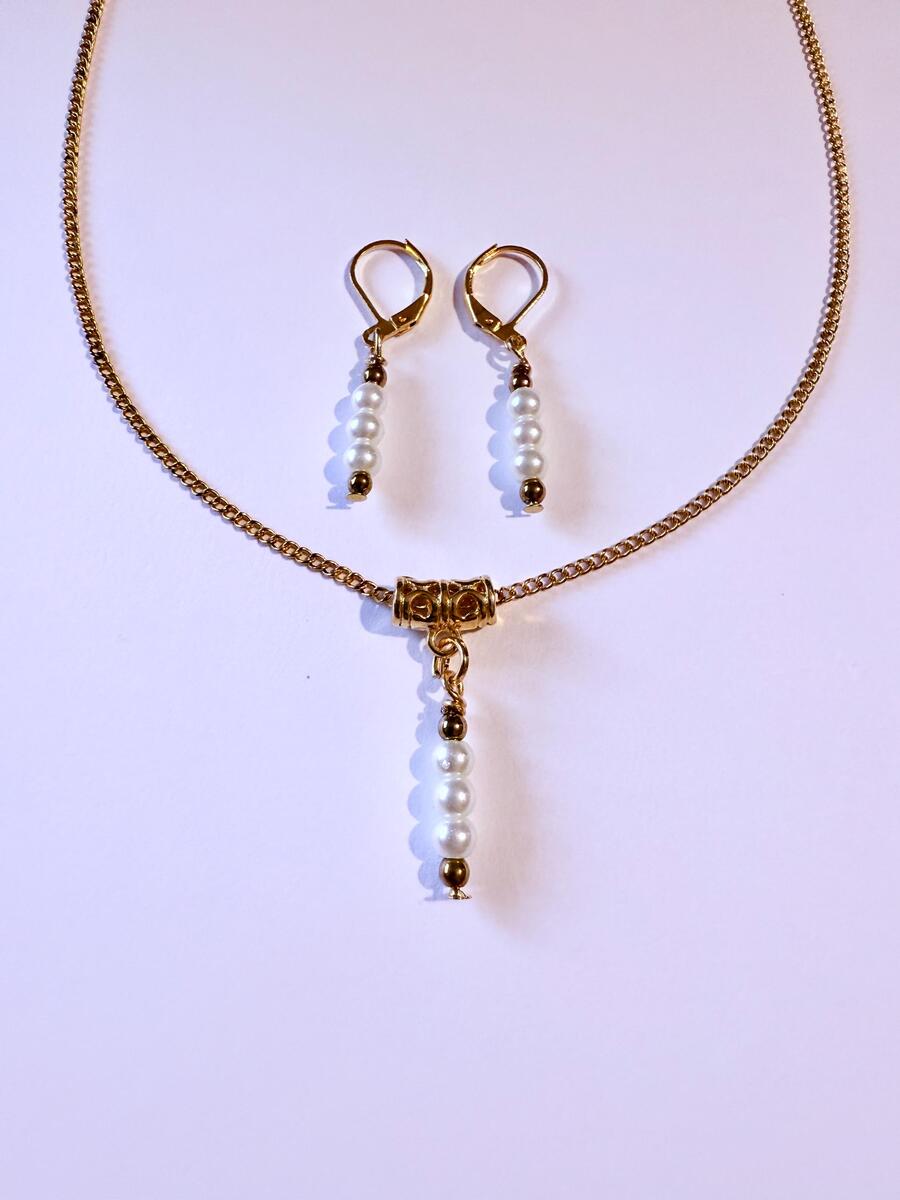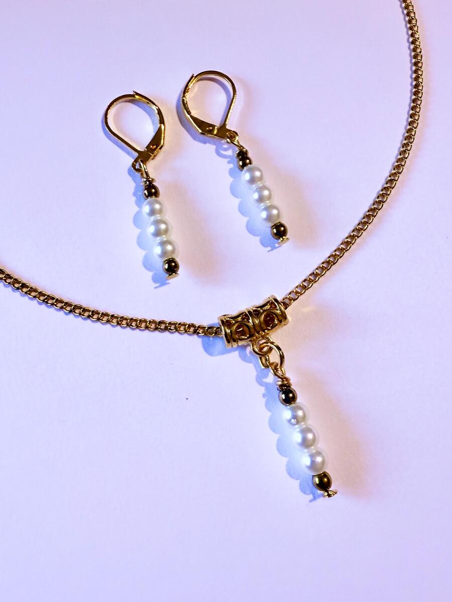 Beautiful Set of gold tone tiny Hematite and white little glass pearl beads pendant necklace and earrings. Antique style gold-tone set necklace and earrings . Gold tone little white glass pearls Victorian style necklace and earrings . Boho necklace . Boho jewelry set . Boho pearl earrings . Bohemian necklace and earrings . Birthday set necklace and earrings . Gold-tone Elegant style jewelry set . Bridal jewelry set. Jewelry set for wedding. Birthday gift set.