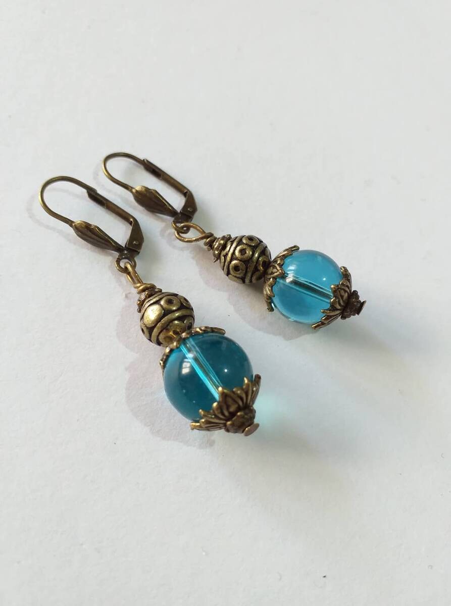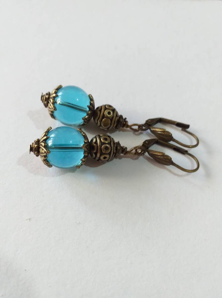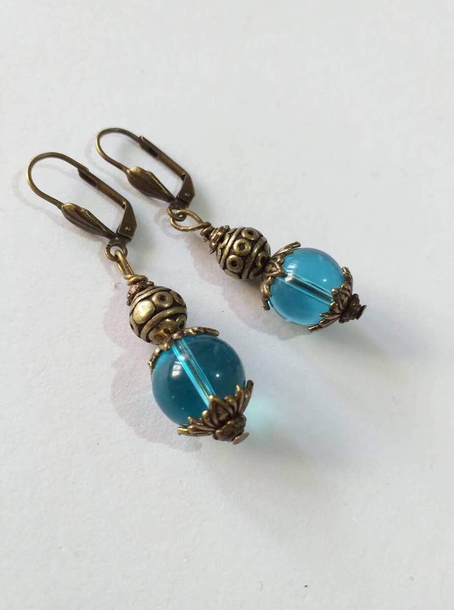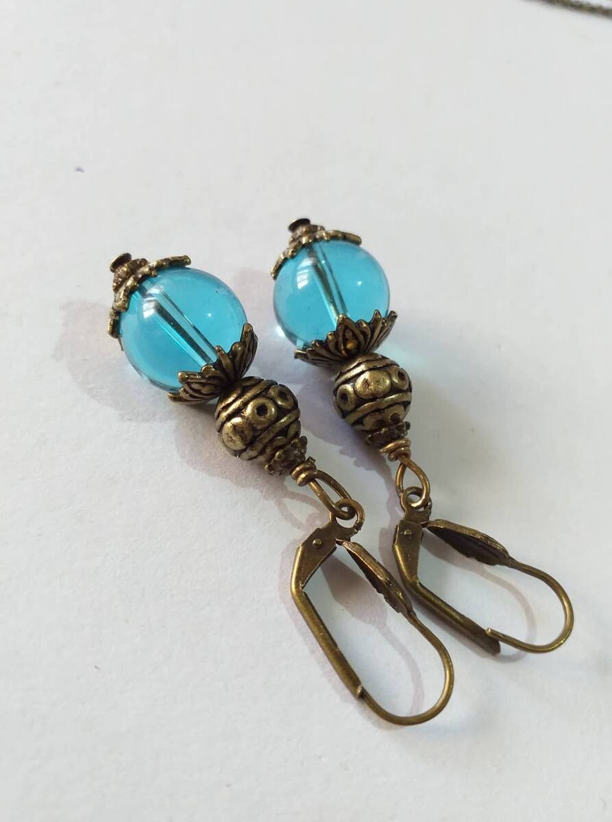 Victorian blue bronze earrings bohemian earring Boho blue glass earrings antique set gift earrings blue bronze earrings