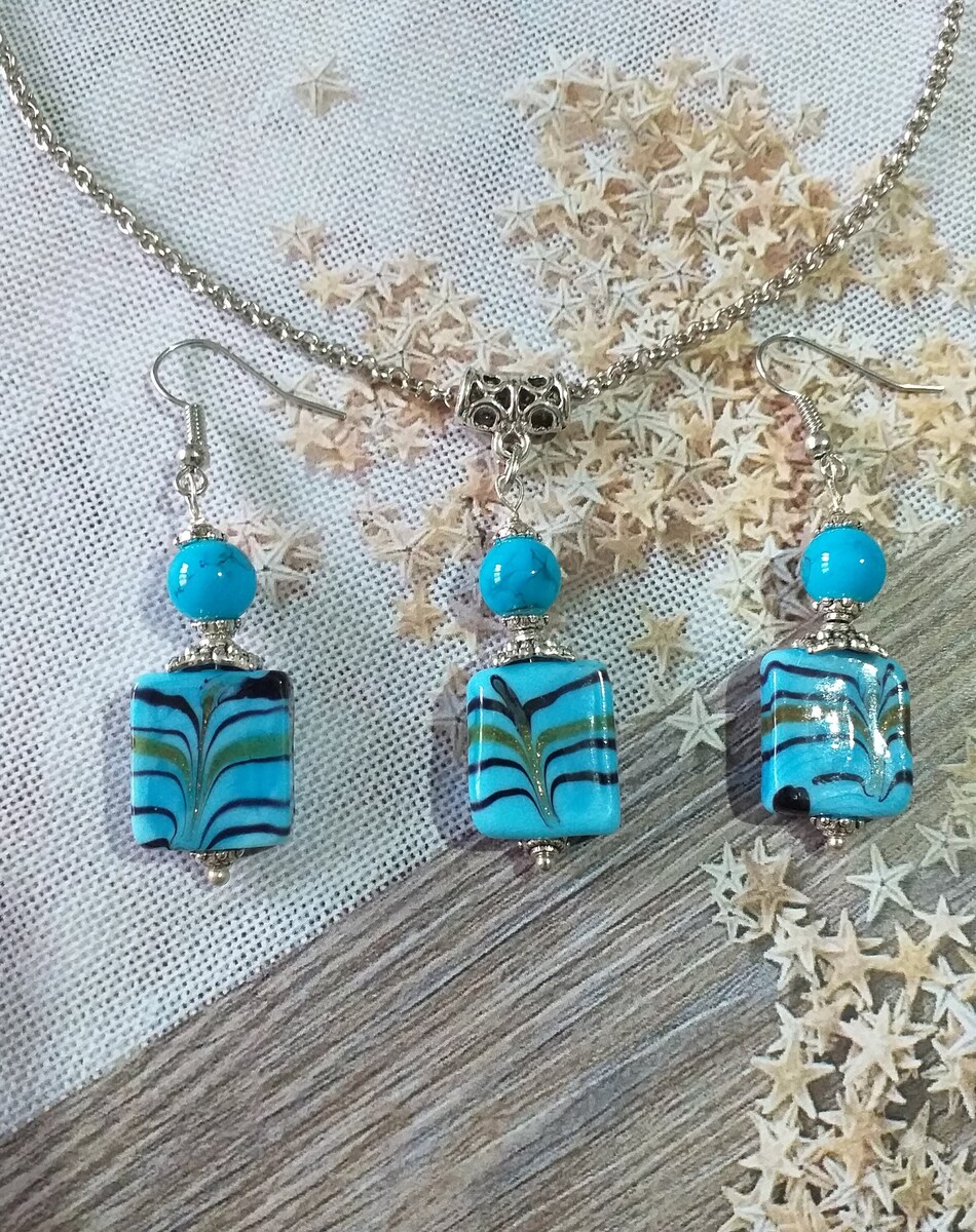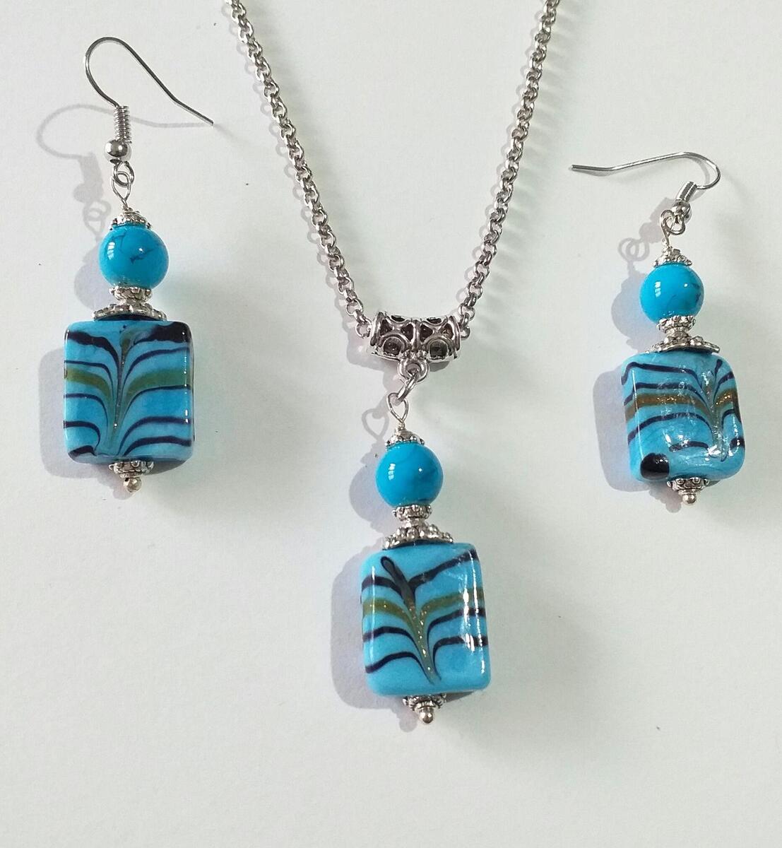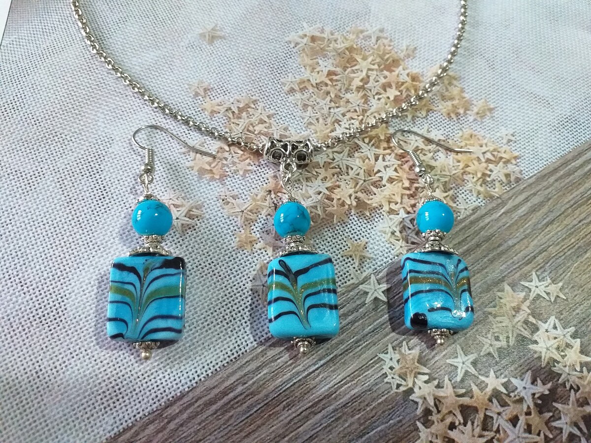 Blue Lampwork glass jewelry set Silver and 49 similar items