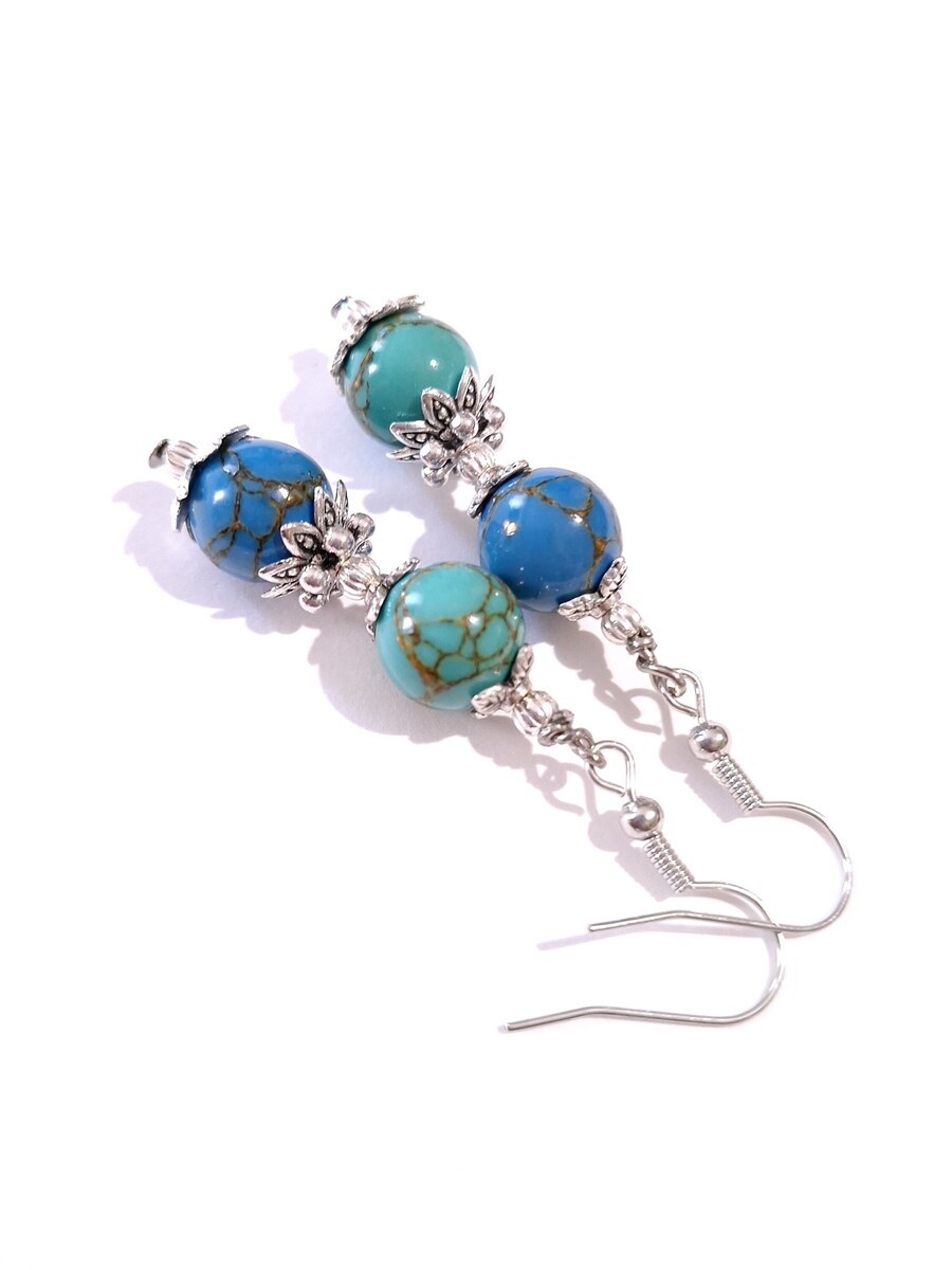 Blue green Azurite silve earrings Victorian earrings Boho earrings Bohemian Azur