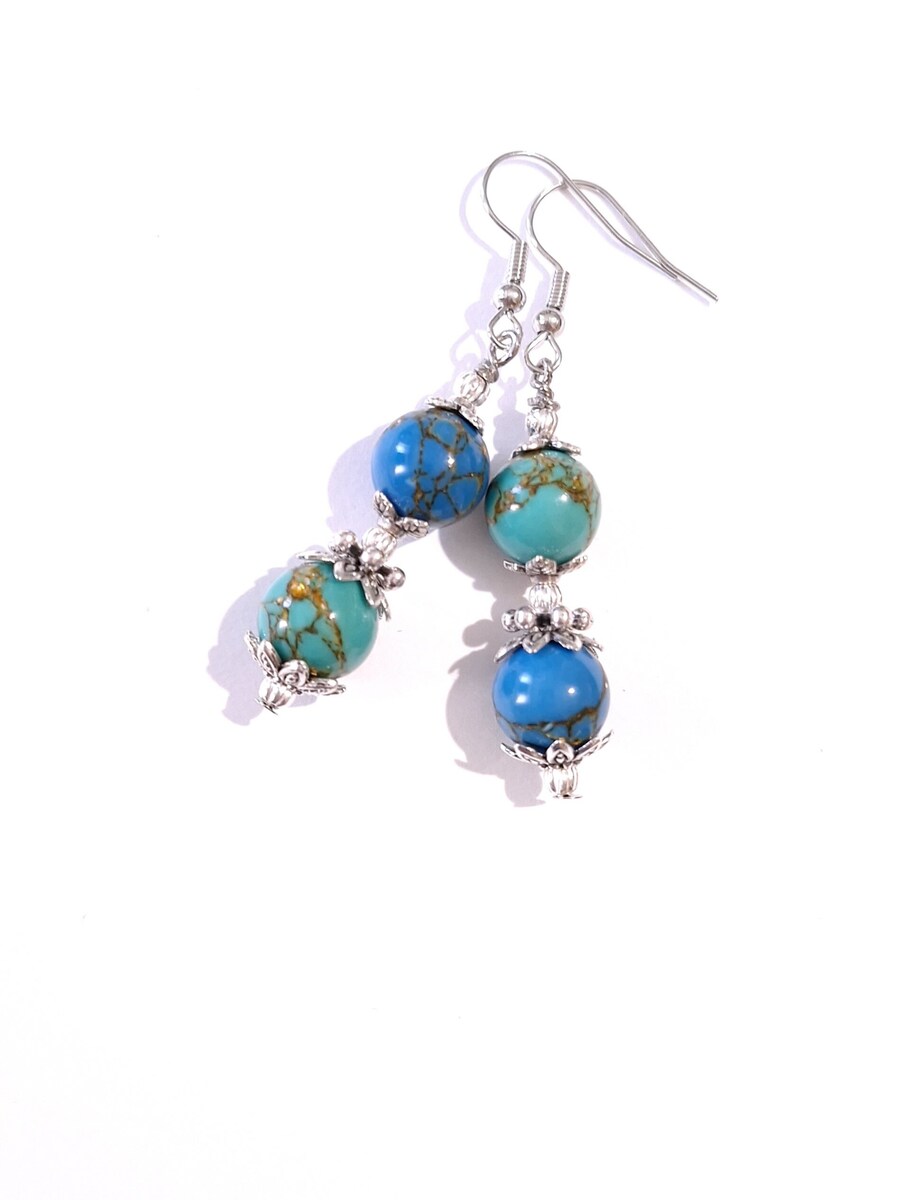 Beautiful Victorian Rare Blue and green Azurite filigree silver-tone earrings. Azurite earrings . Azurite jewelry. Azurite Dangle earrings . Bohemian earrings . Azurite and silver-tone ornaments earrings . Vintage style earrings . Antique style earrings. Rare Blue and green Azurite earrings .