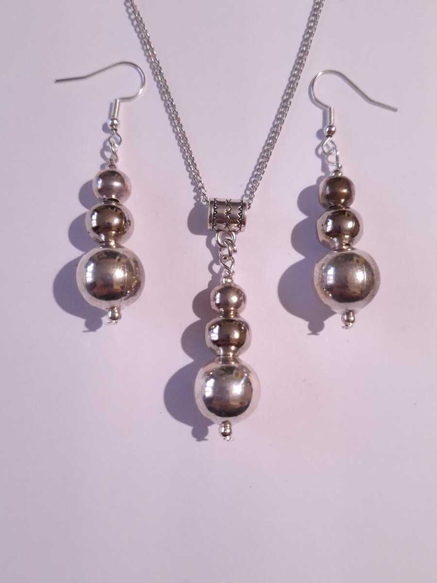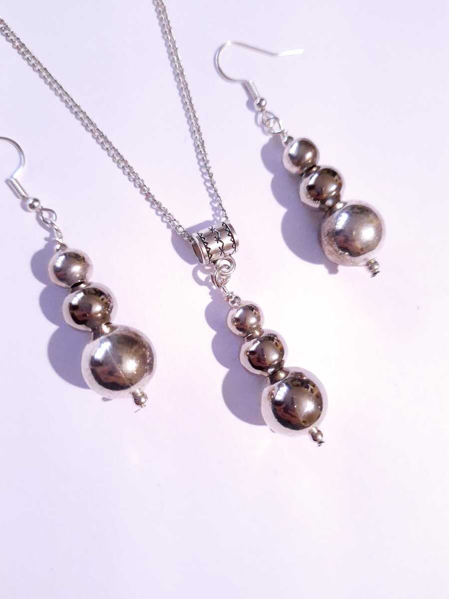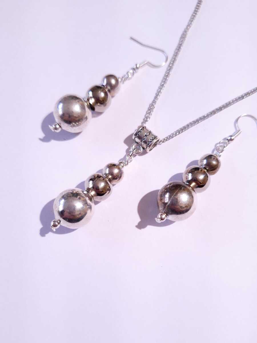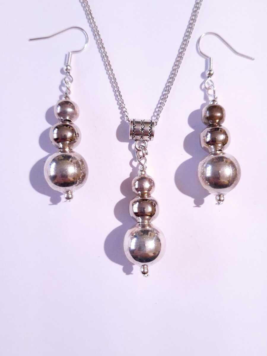 Silver triple ball jewelry set Boho set modern art set Silver pendant set three