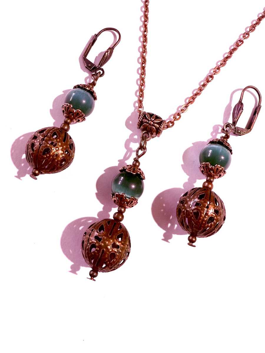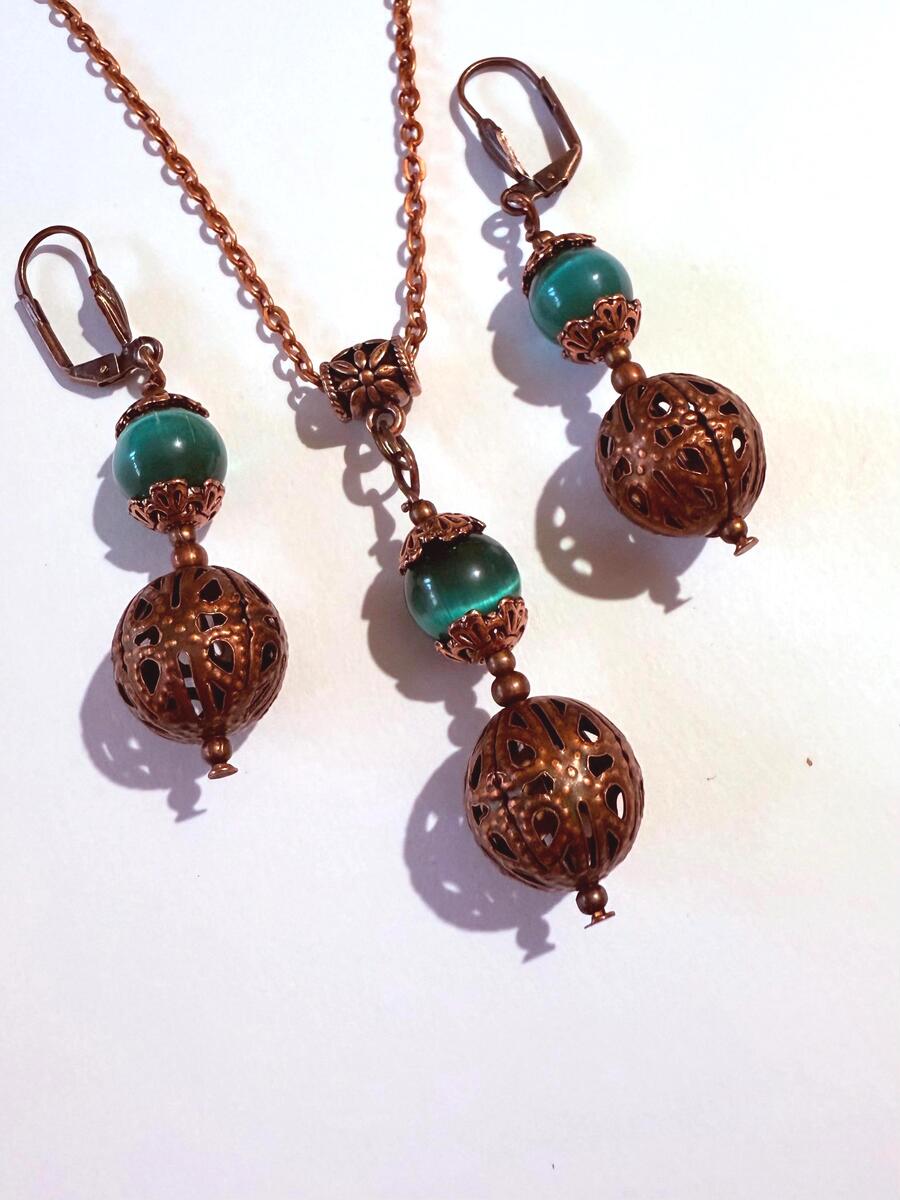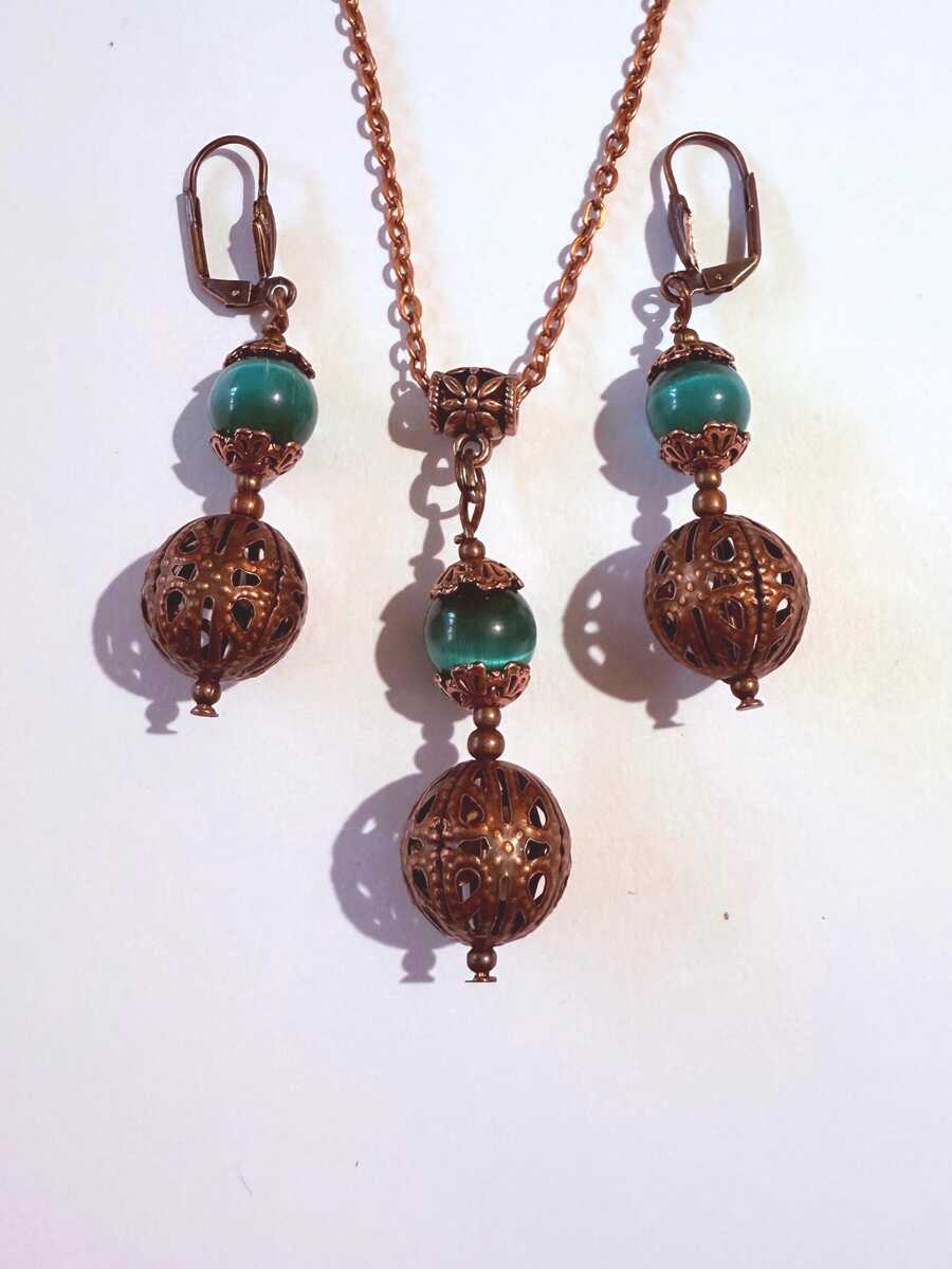 Emerald green Chrysoberyl copper jewelry set and 50 similar items