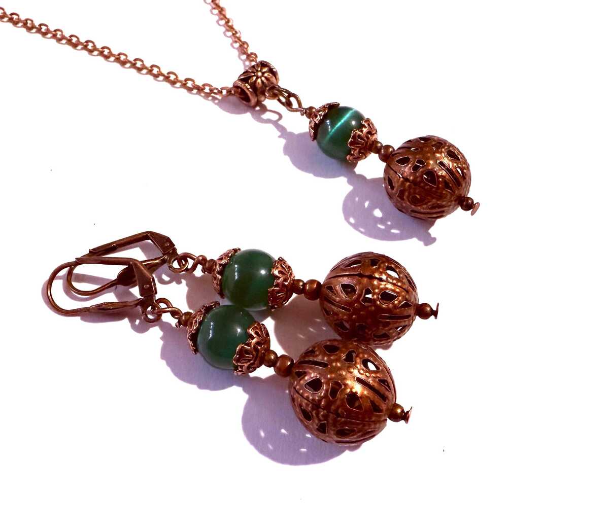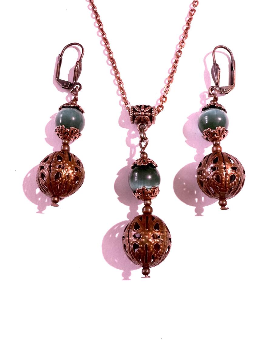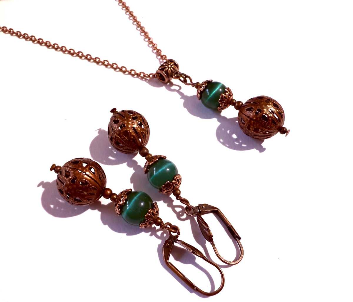 Emerald green Chrysoberyl copper jewelry set and 50 similar items