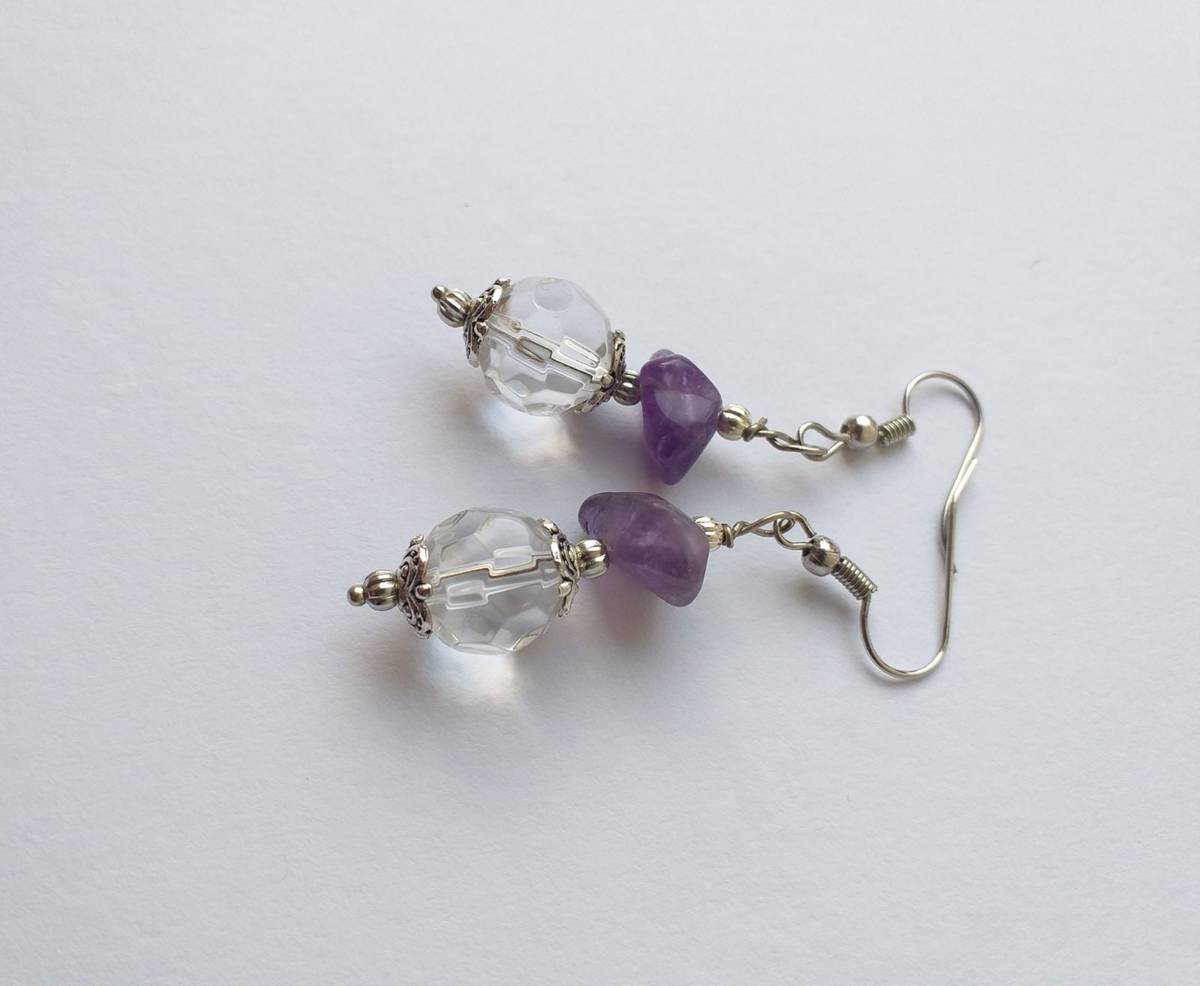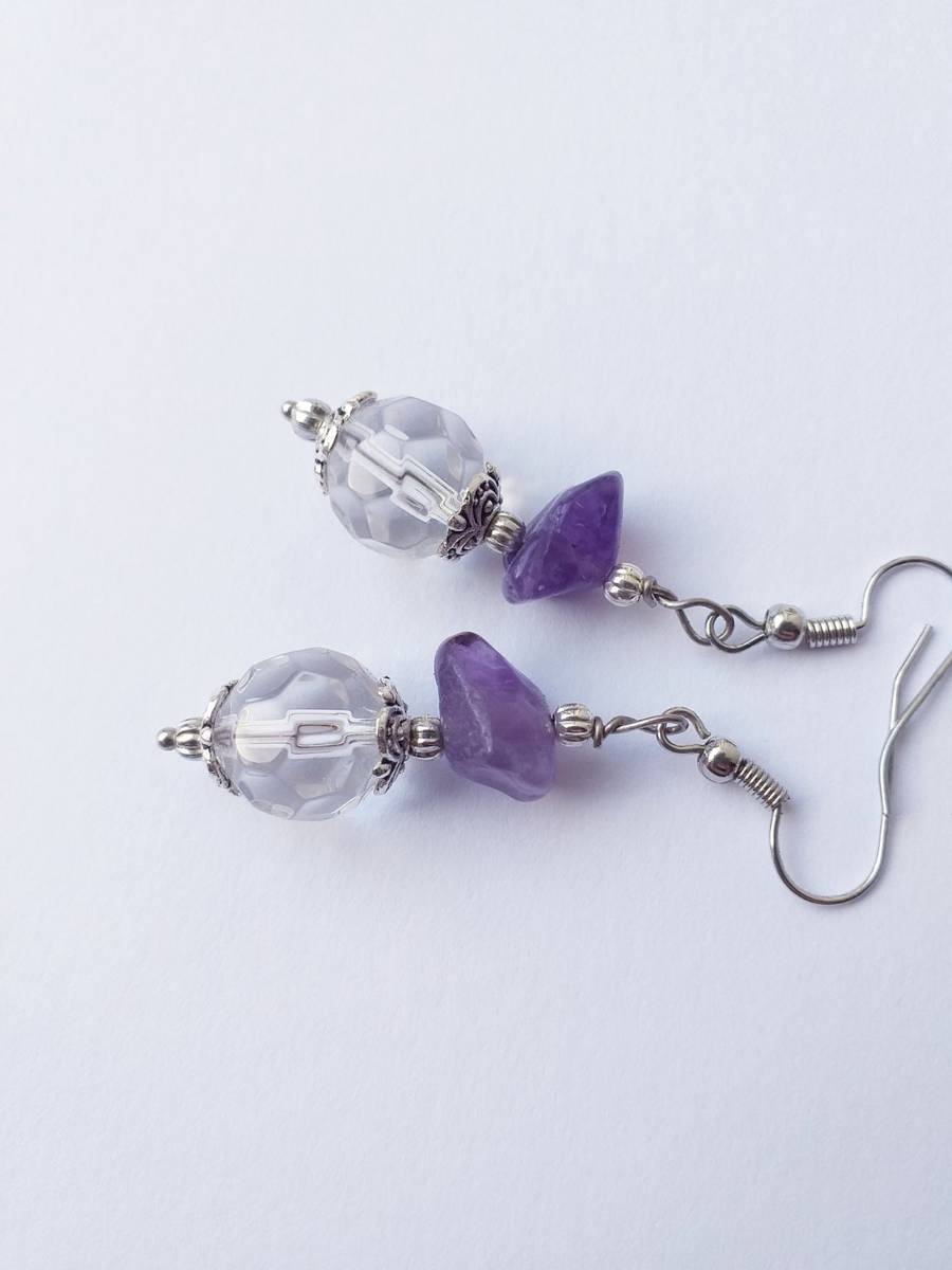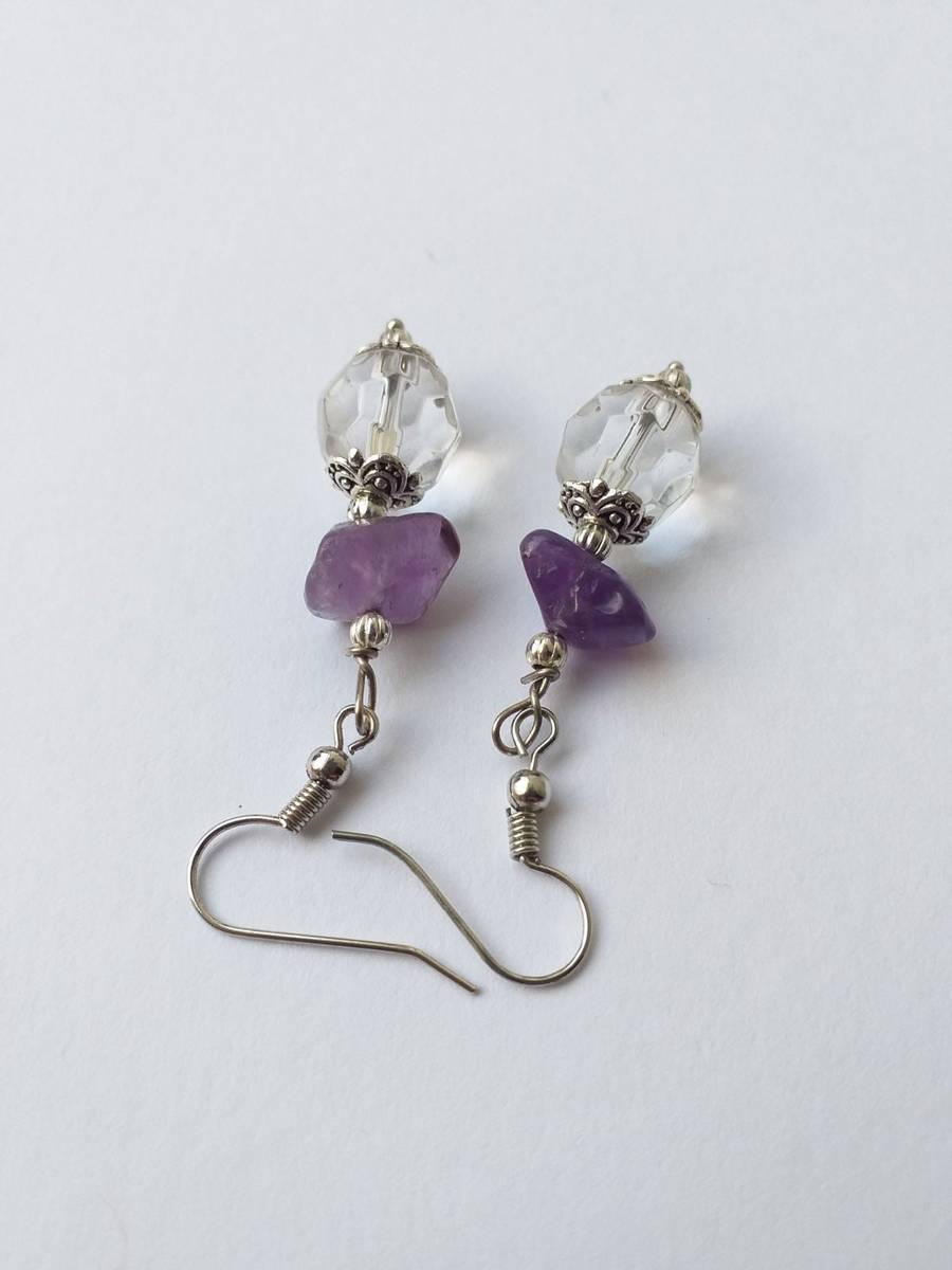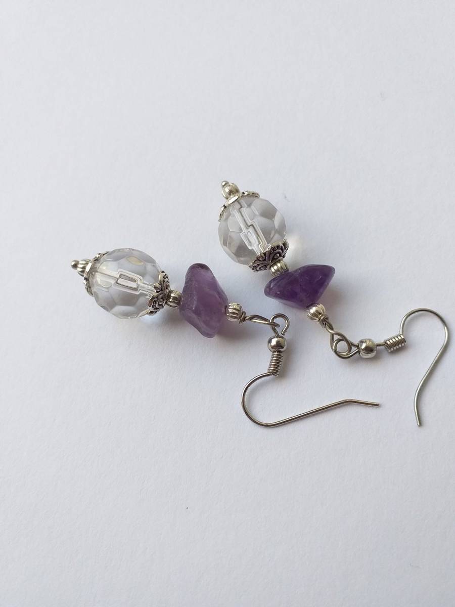 Silver earrings Amethyst earrings Boho earrings Bohemian Amethyst Earrings Antique style earrings . White faceted crystal earrings and Genuine Amethyst .