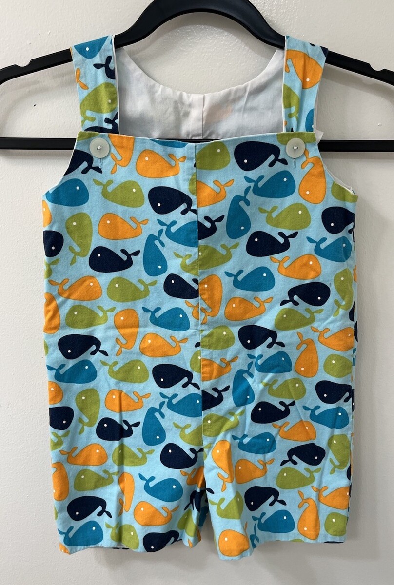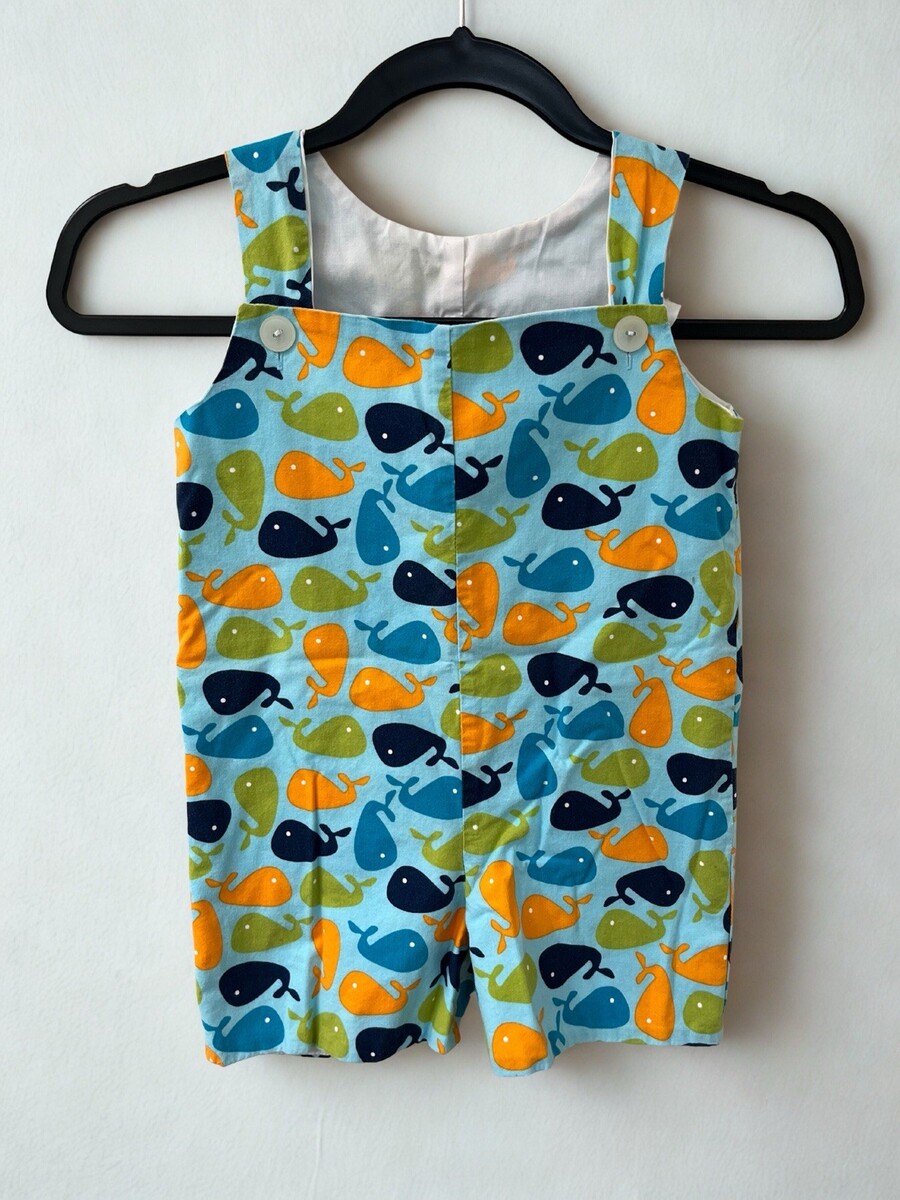 SMOCKADOT Kids Overalls One Piece Whale Romper SIZE 4T ocean blue green orange