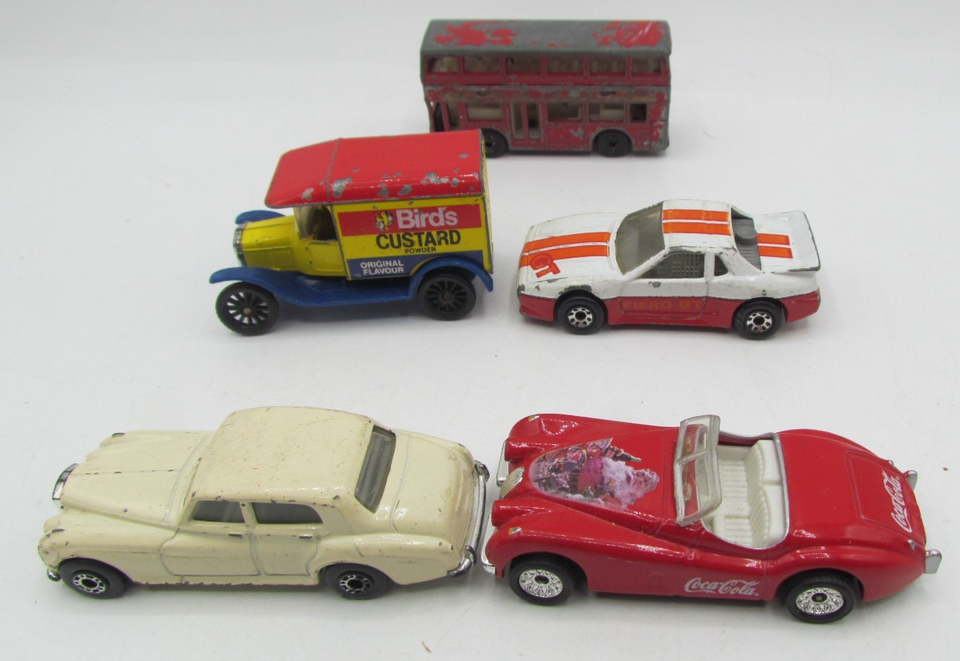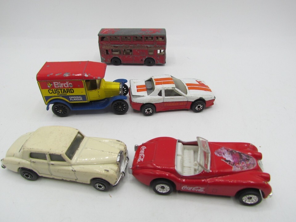 This lot of 5 vintage Matchbox die-cast vehicles from the 1980s includes a variety of classic cars. Made from durable die-cast material, these vehicles have been heavily played with over the years, but are still in good condition. Each car represents a piece of nostalgia from the past, making them a valuable addition to any vintage toy or die-cast vehicle collection. Perfect for collectors or enthusiasts of Matchbox cars, these vehicles are sure to bring back memories of childhood playtime adventures.