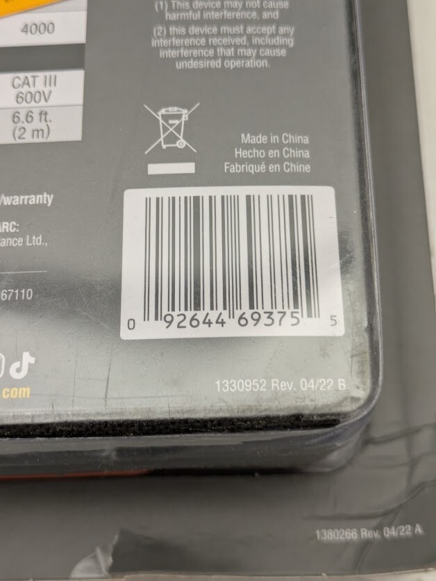 Includes carrying pouch, safety rated CAT III 1000V/CAT IV 600V test leads, thermocouple with adapter and 2 x AAA batteries