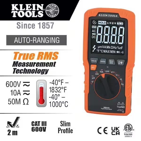 New Klein Tools Auto-Ranging Slim Digital Multimeter Digital Multimeter TRMS