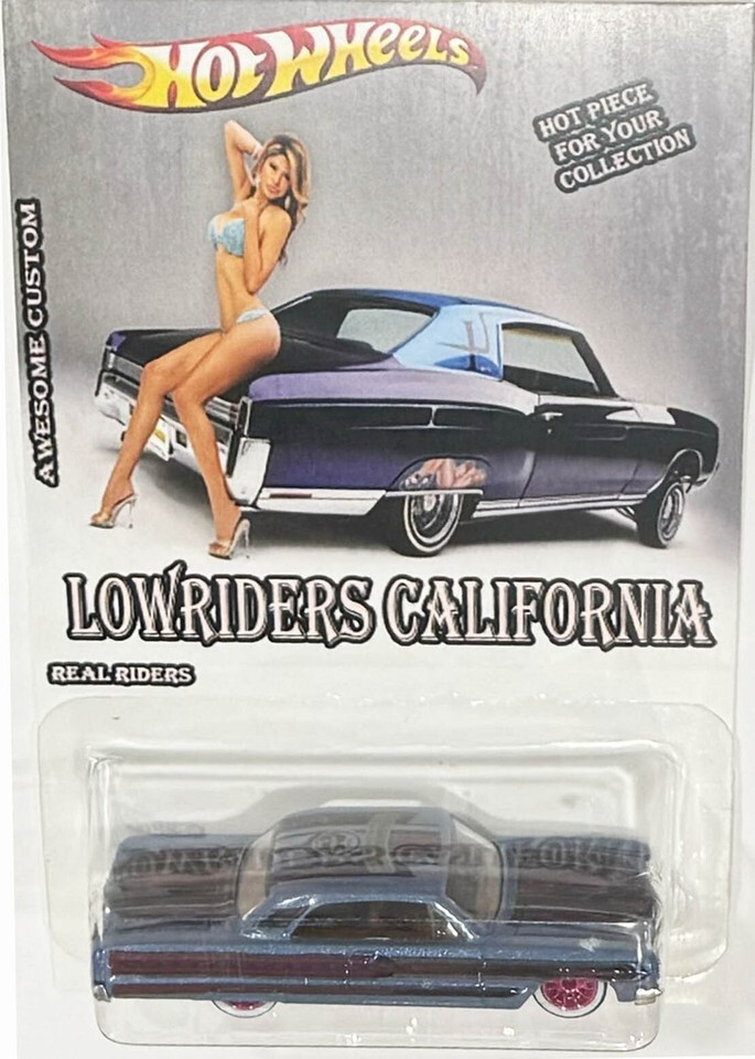 Gray/Blue '59 CHEVY Impala CUSTOM Hot Wheels Lowriders California Series w/ Pink Real Riders Rubber Wheels.