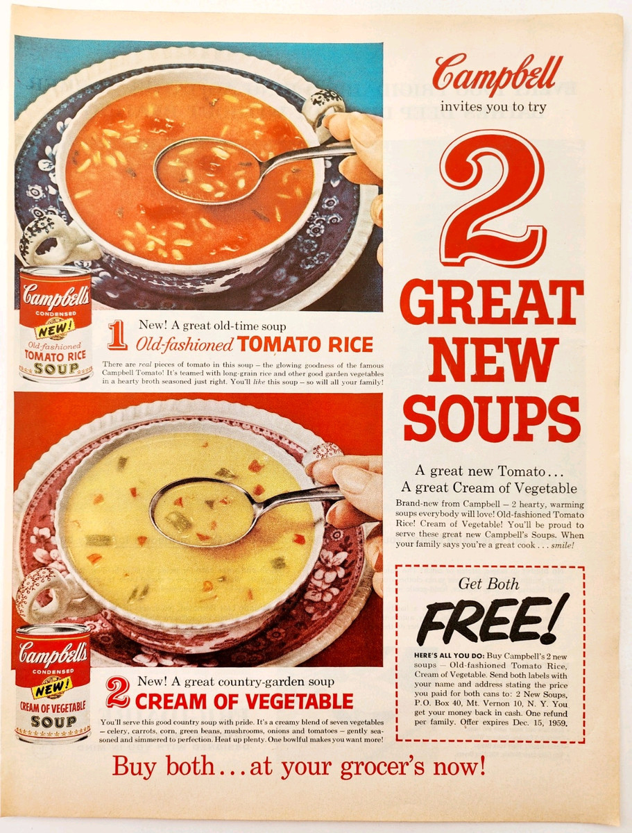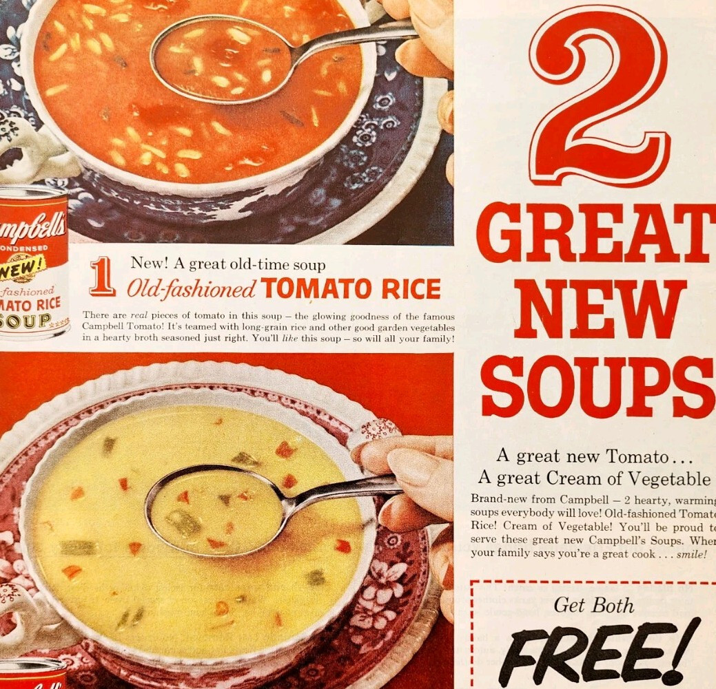 1959 Campbell's Tomato Rice Cream Of Veg Soup Advertisement Canned Foods DWII25