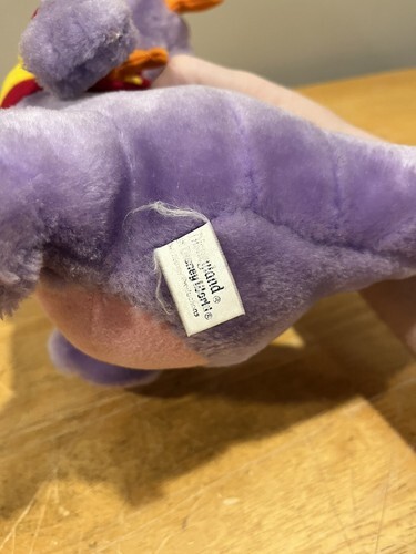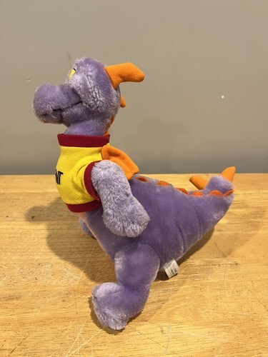 Disney Figment the Dragon 10" Plush Stuffed Toy is a vintage collectible from the Epcot theme park at Disneyland and Walt Disney World. The plush toy features Figment, a character from the Imagination! pavilion, which opened in 1982. The product is made in Korea and is part of the Disney franchise.