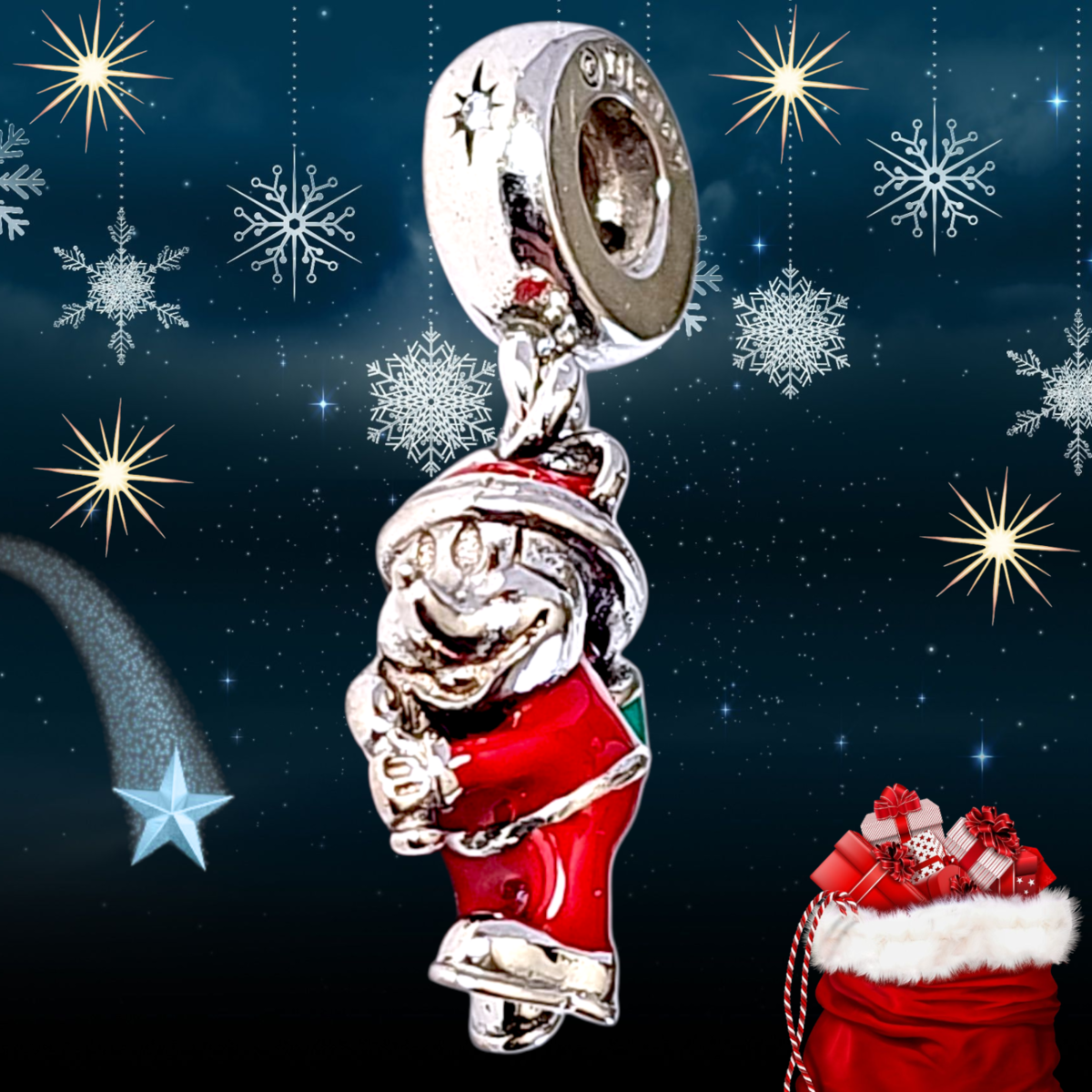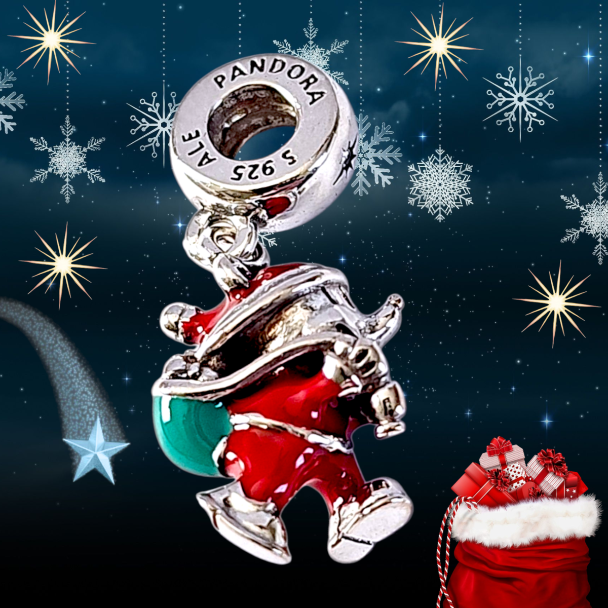 PANDORA DISNE SANTA MICKEY & GIFT BAG Dangle Charm 797501ENMX US SELLER