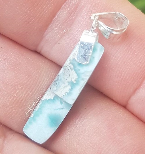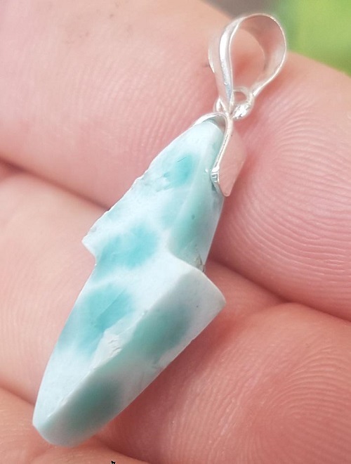 Larimar is a rare variety of pectolite,only found in Dominican Republic. Its specified coloration in a range containing white, light blue,brown, greenish blue and deep blue.
