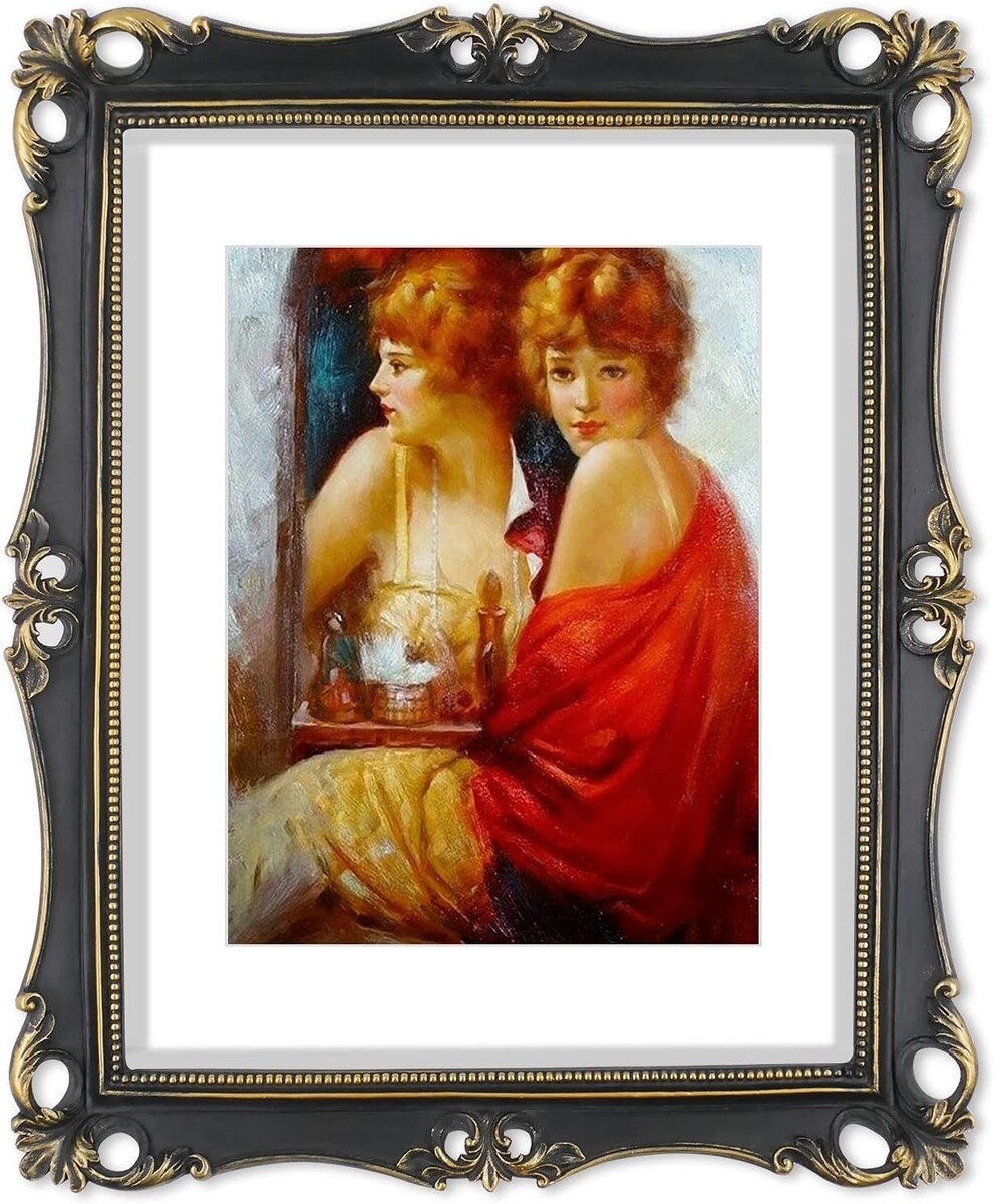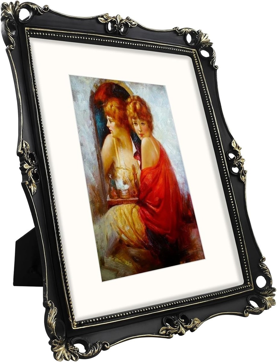 SIMON'S SHOP 11x14 Picture Frame with Mat for 8x10 Artwork, Vintage Poster Frames for Gallery Wall and Tabletop, Antique Style Black Gothic Photo Display
