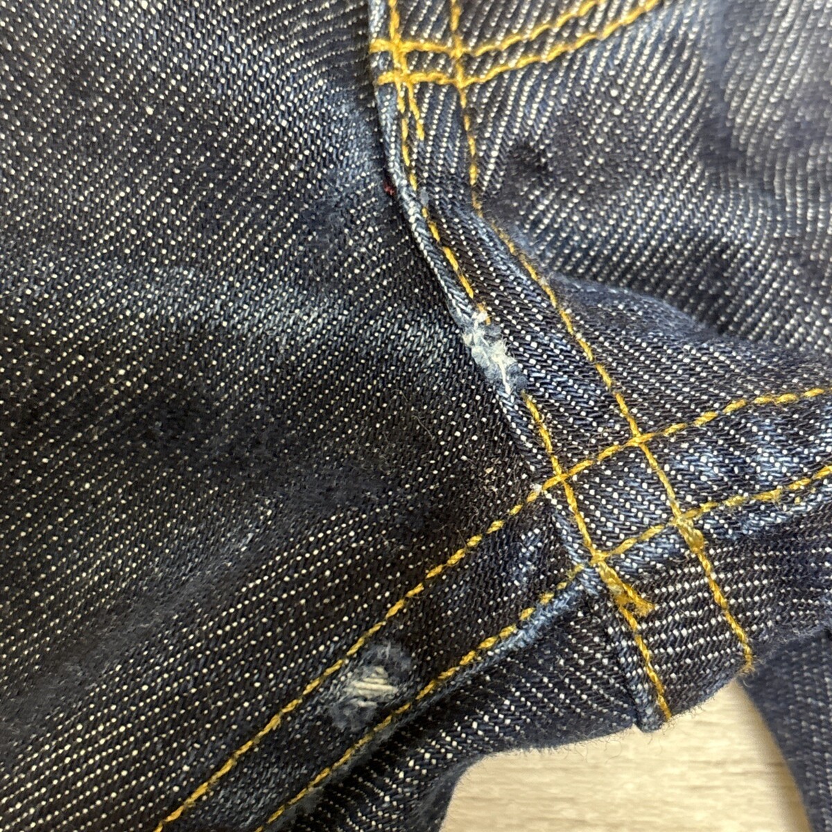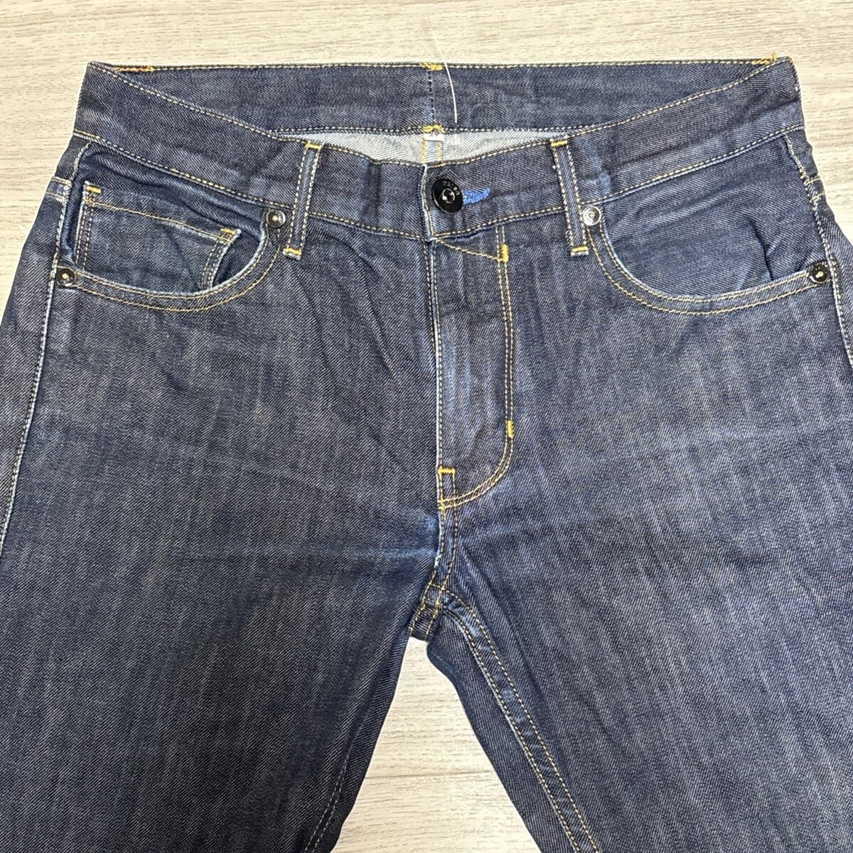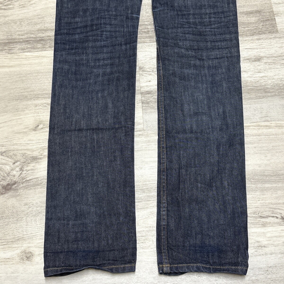Freshly laundered. Wear to the inseams