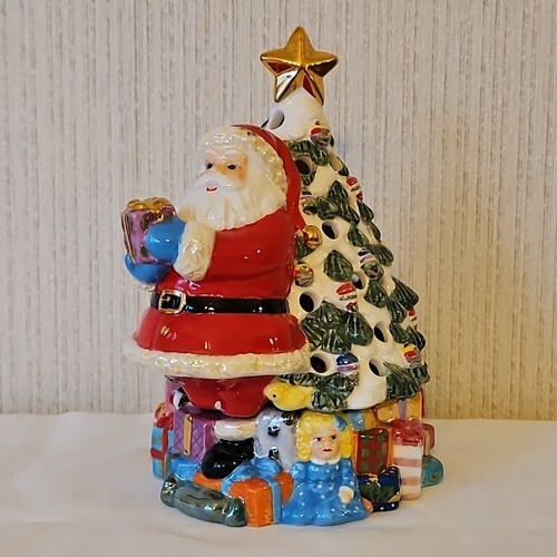 Christopher Radko Candle Holder Santa Claus Ceramic Christmas Tree Reticulated