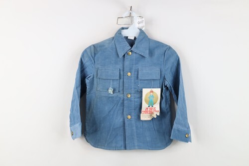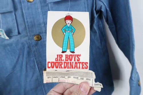 Deadstock Vintage 60s 70s Boys Toddler 6 Corduroy Button Shirt Jacket Jac Blue