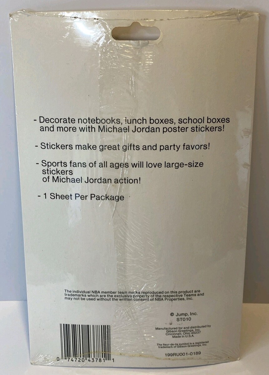 1988? Jump Inc. Michael Jordan Bulls Sticker Poster Gibson Greetings New Sealed