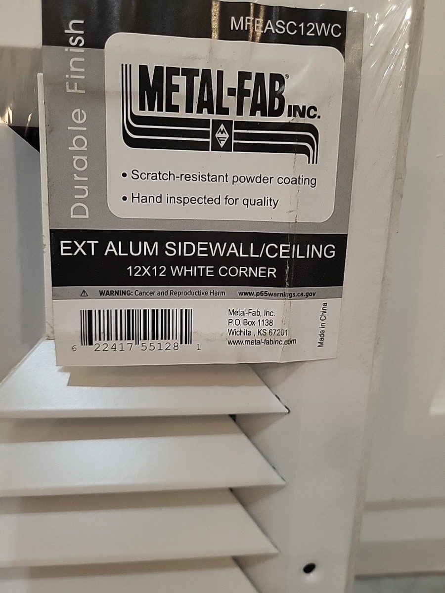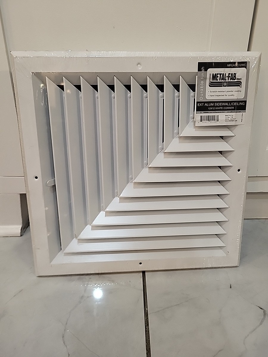 Extruded Aluminum Sidewall/Ceiling Diffuser 12X12 White Corner