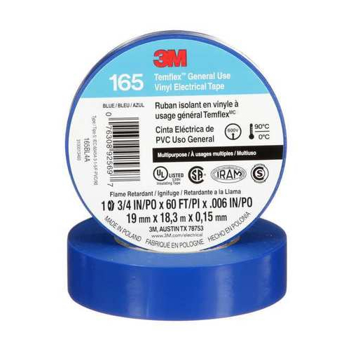 3M 165BL4A 60FT 3M TEMFLEX VINYL ELECT. TAPE 165 BLUE 3/4 IN - 337465