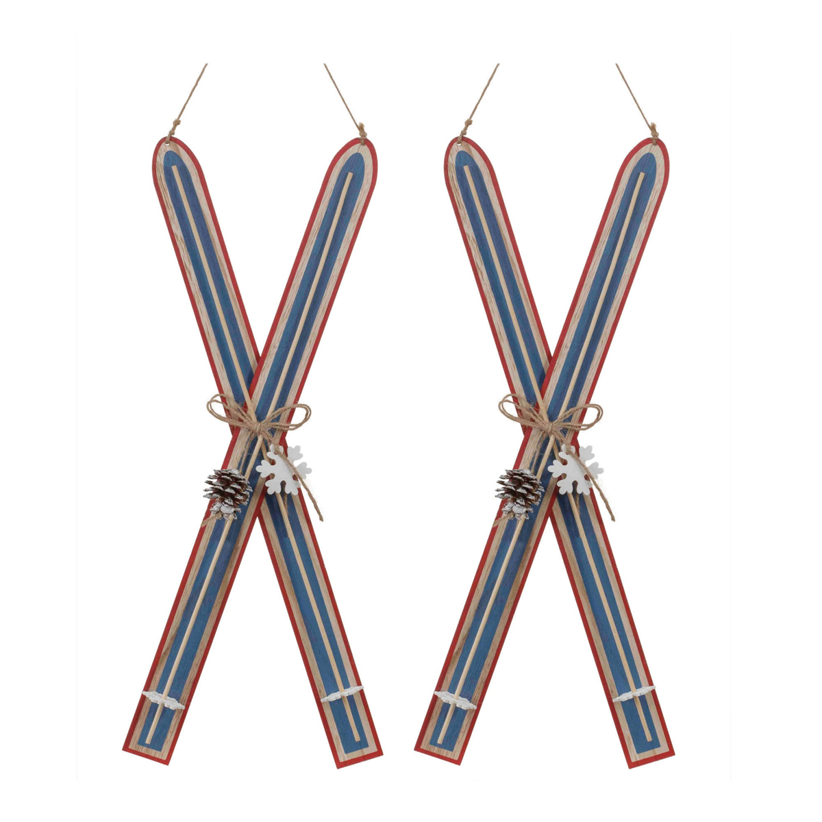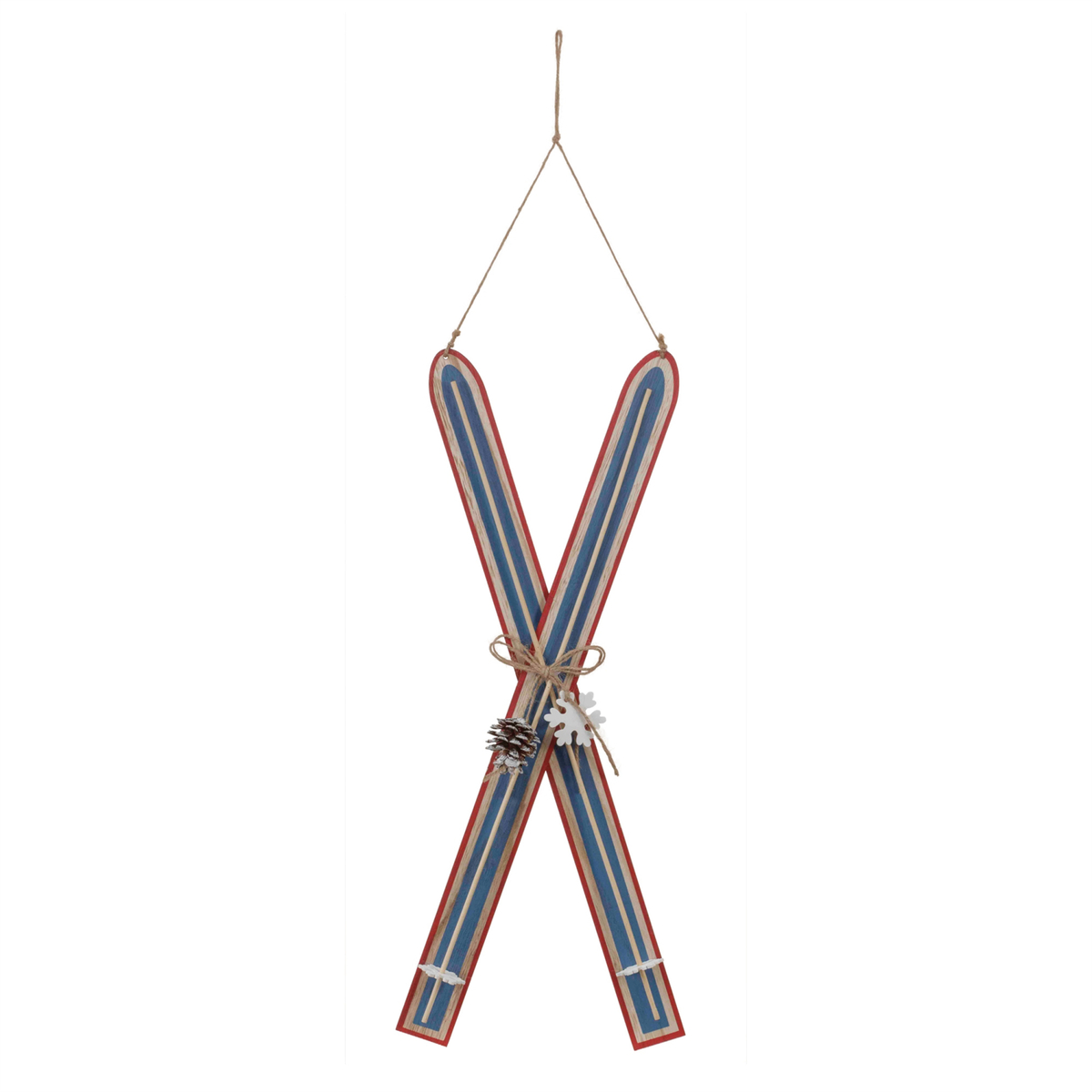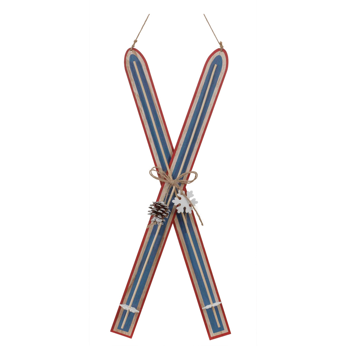 Vintage Lodge Charm: Rustic red and blue skis with pinecone and snowflake details add a nostalgic touch to your Christmas tree. Durable High-Quality Materials: Made from sturdy wood with natural jute rope hangers, designed to last through seasons of holiday celebrations. Perfect for Home or Commercial Displays: At 22 inches long, these striking ornaments are ideal for both residential homes and commercial spaces, bringing festive cheer to any setting. Suitable for indoor use only