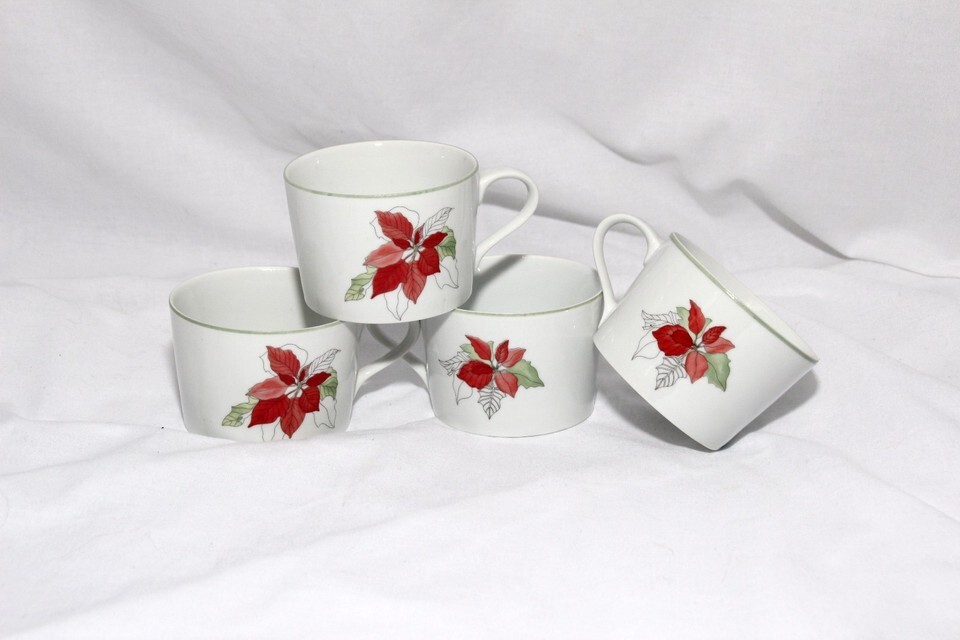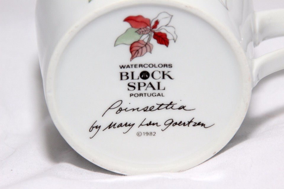 Block Spal Watercolors Poinsettia Cups Christmas Lot of 4 Xmas