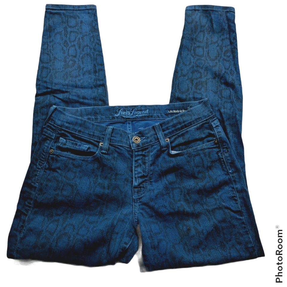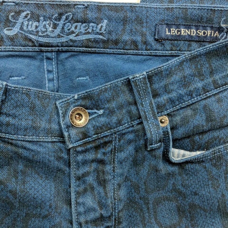 Lucky Brand Legend Sofia Skinny Jeans Size 27 Leopard Animal Print Blue