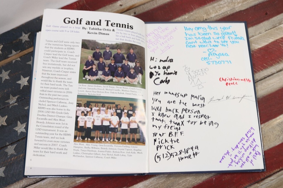 The Vintage 2006 Running Brushy Middle School Cedar Park Texas Yearbook Volume 6 is a special collectible item featuring the iconic moments and memories from the school during that year. This yearbook is signed, adding a personal touch and making it even more unique and special for collectors or former students looking to reminisce about their time at Running Brushy Middle School. With its historical significance and sentimental value, this yearbook serves as a valuable piece of educational memorabilia.