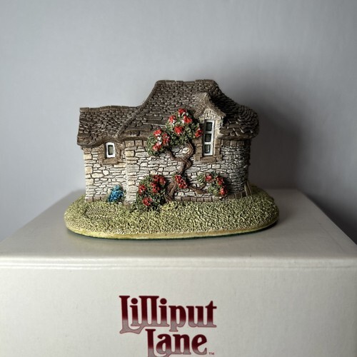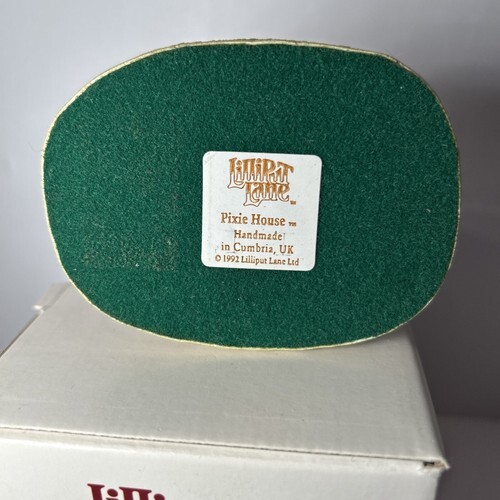 This charming Lilliput Lane Pixie House Cottage is a must-have for collectors of miniature decorative items. The colorful, handmade resin figurine comes in a boxed packaging and is an original piece. The cottage features intricate details and is perfect for displaying on a shelf or as a decorative accent in any room.