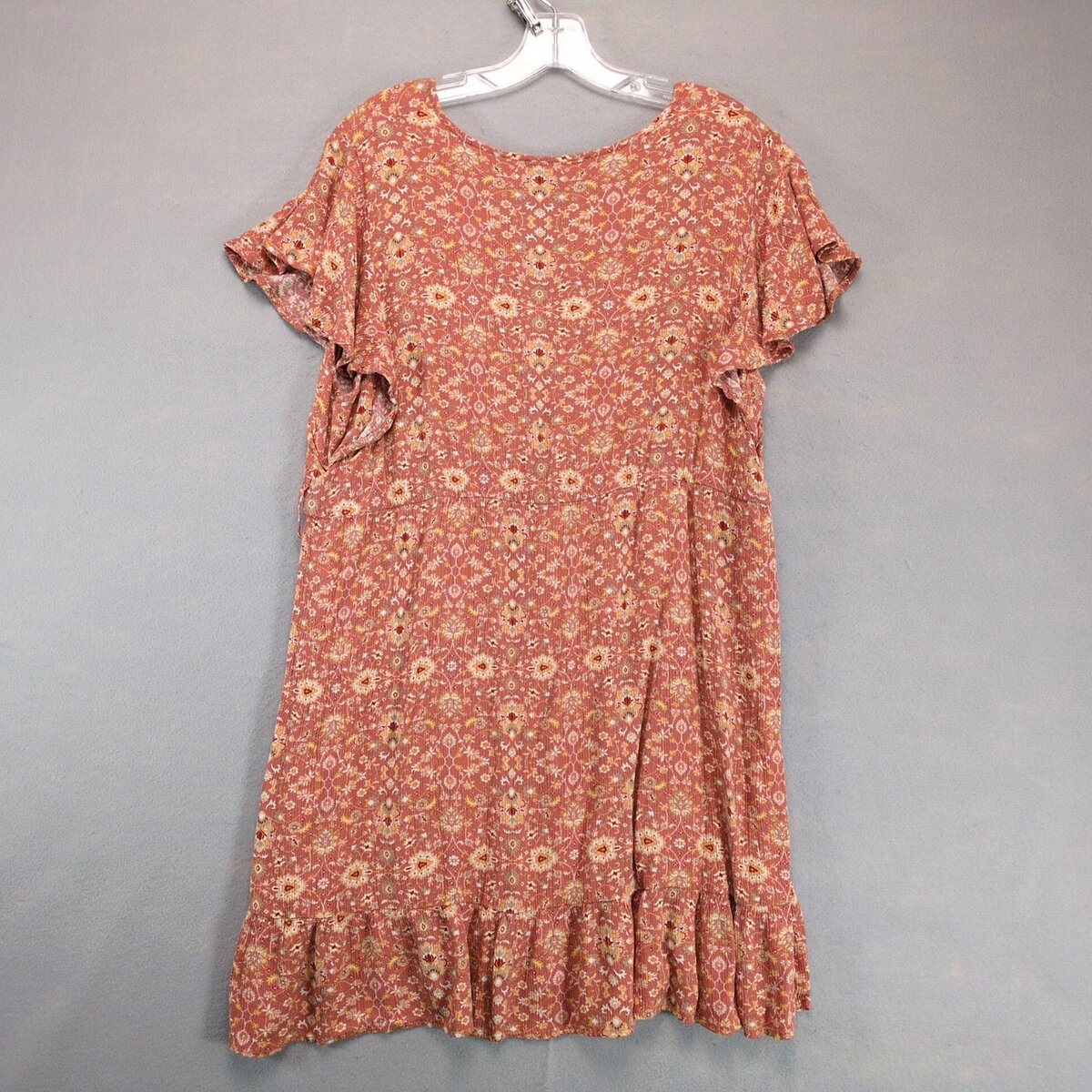 Y2K Wallflower Orange Floral Mini Dress 1X Flutter Slv Tier Elastic Waist Grunge