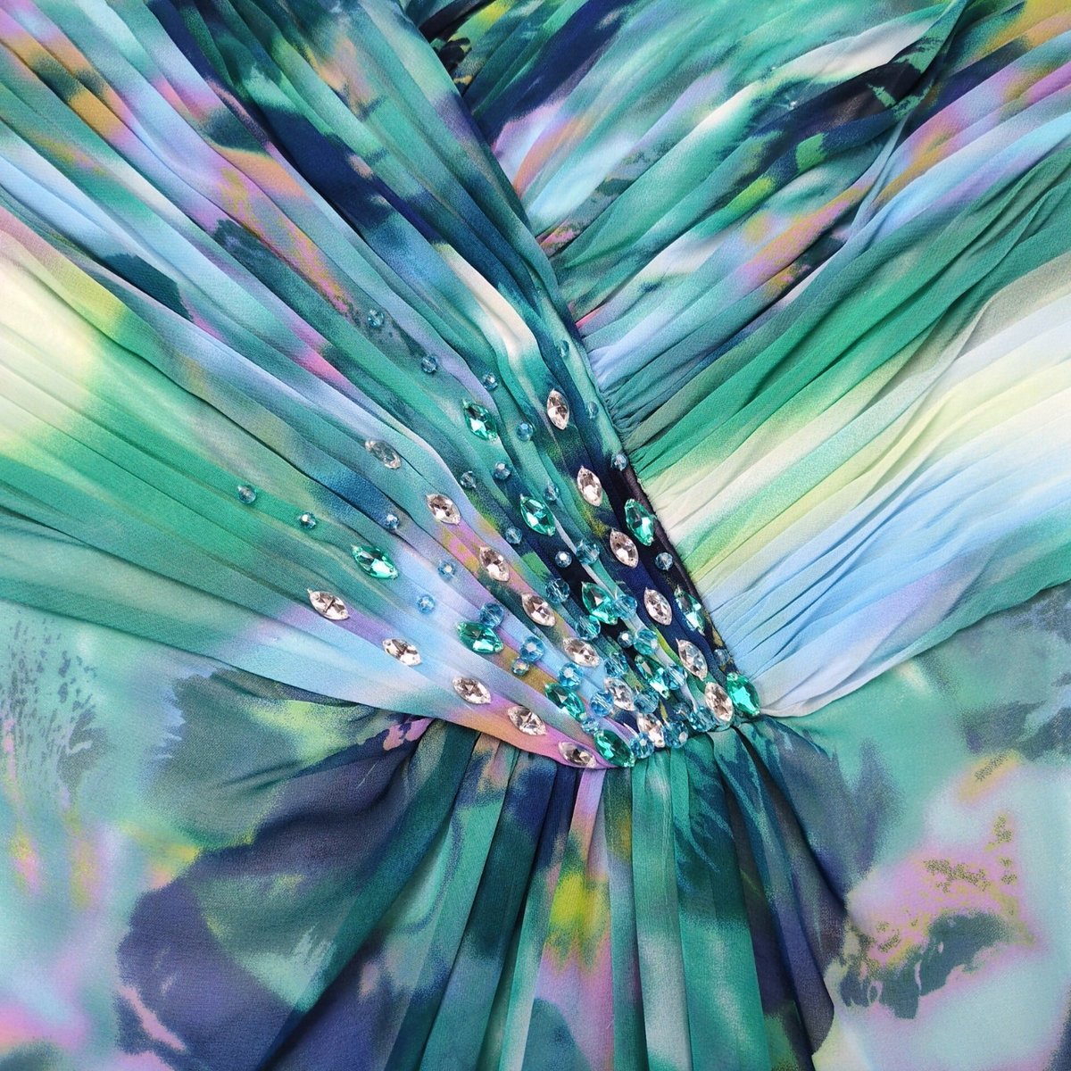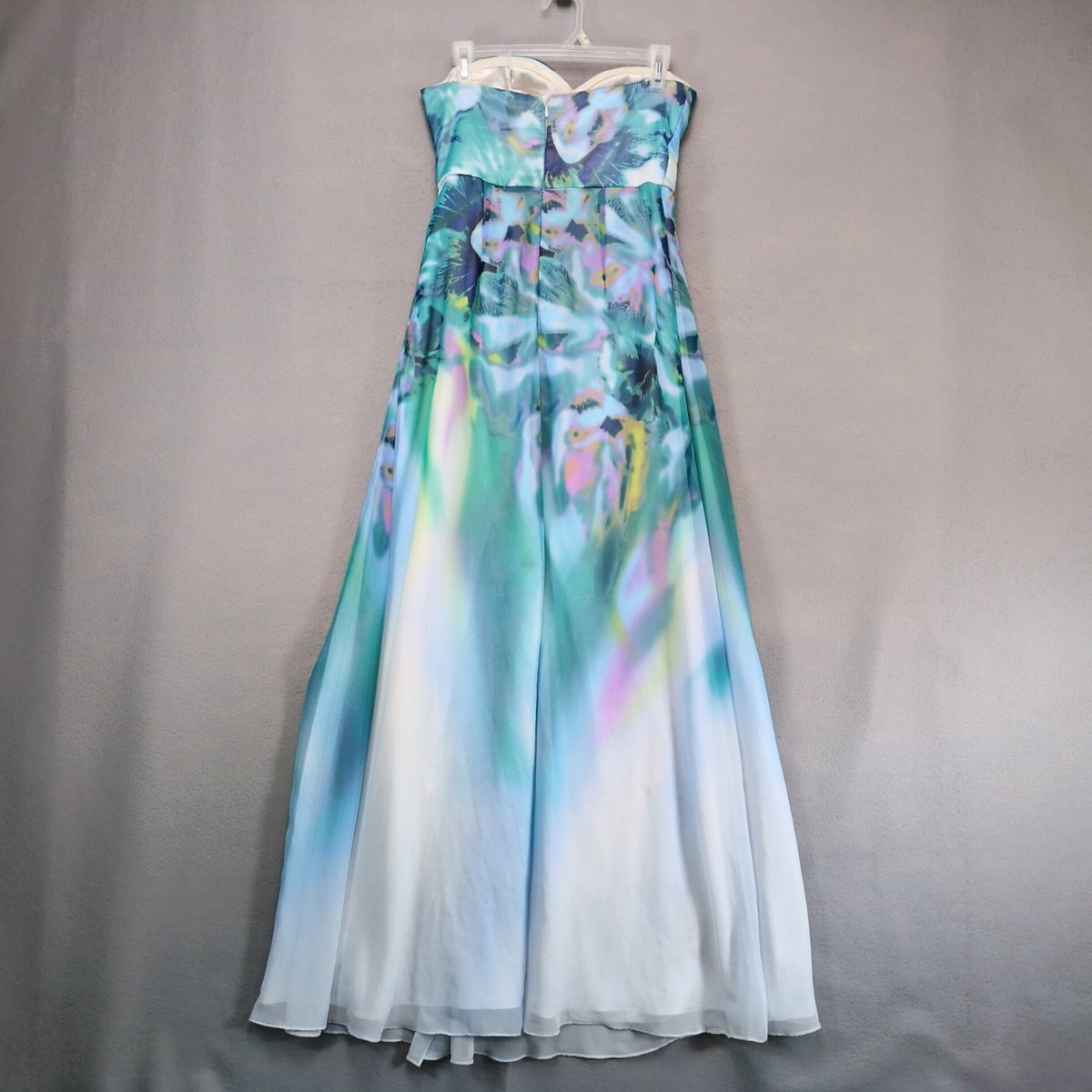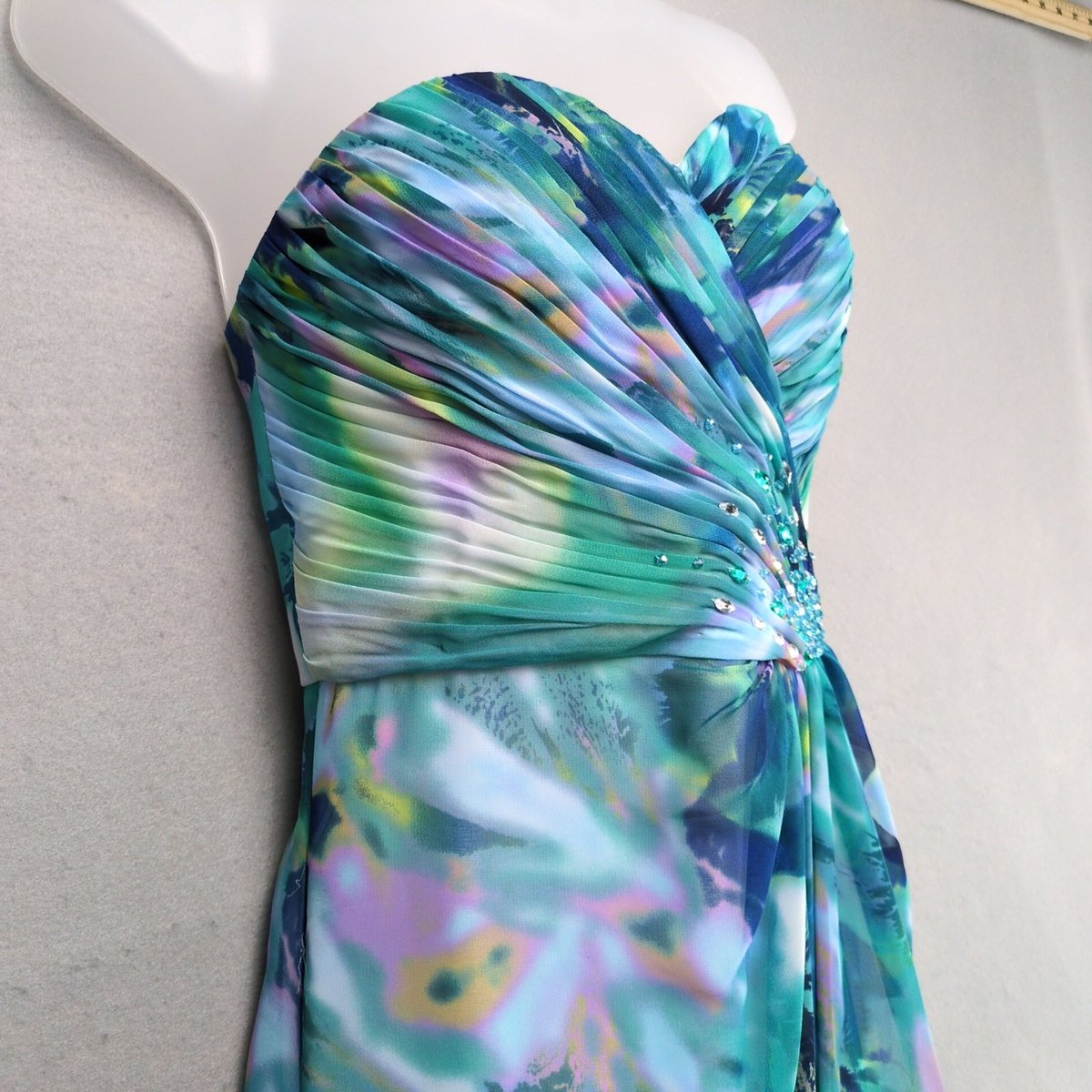 Cachet Rhinestone Strapless Maxi Dress Gown Sz 6 Sheer Tie Dye Floral Front Slit