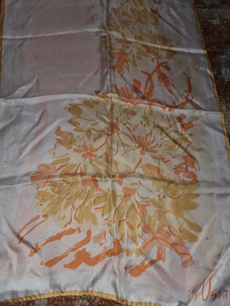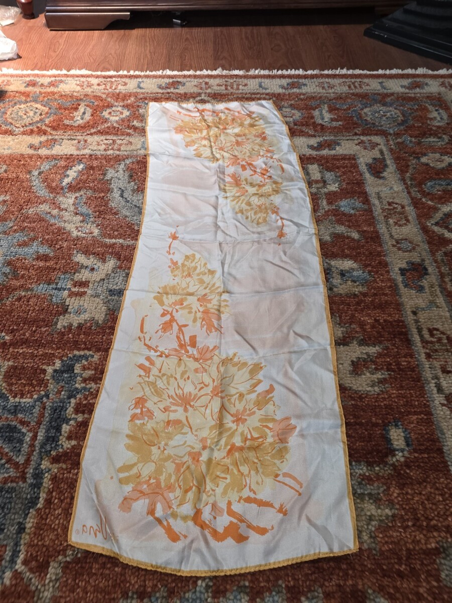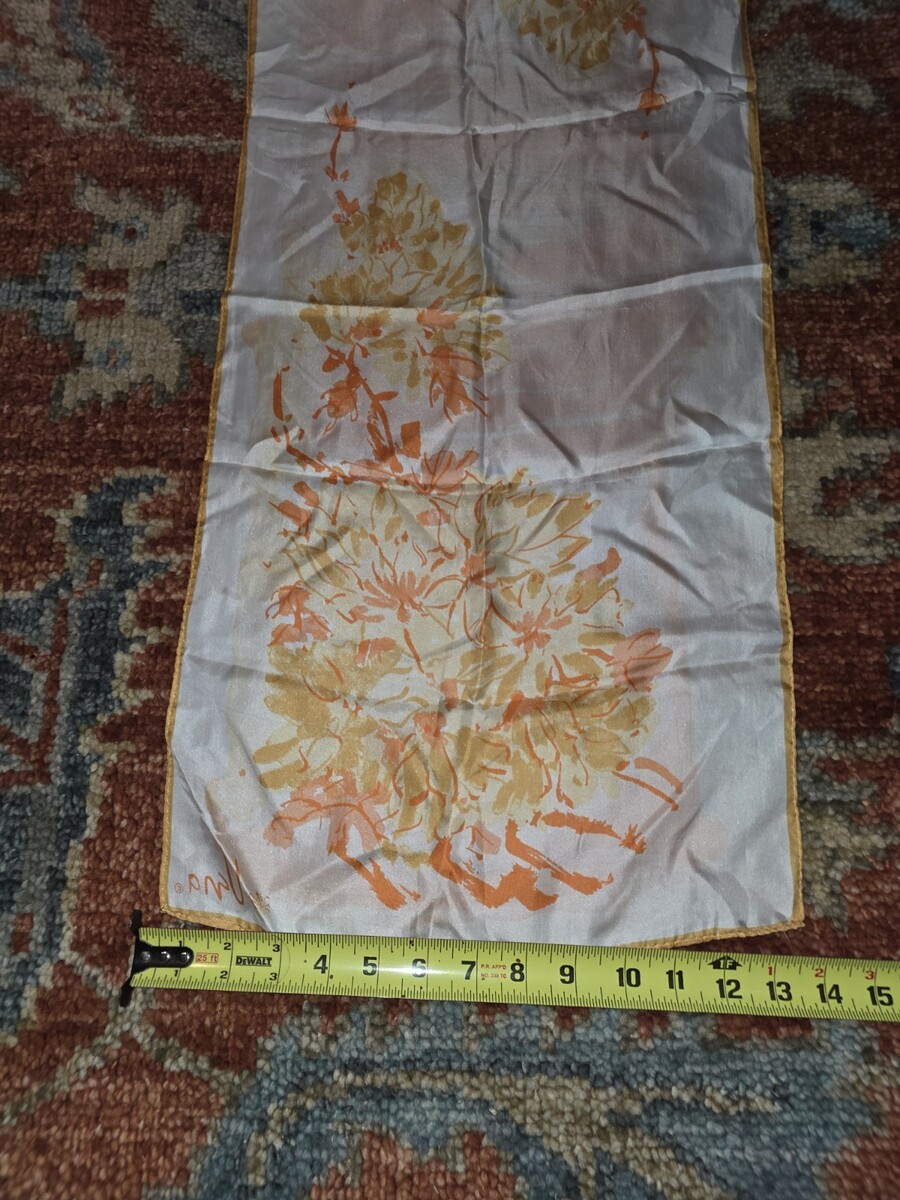 VINTAGE VERA NEUMANN SILK SCARF Gold Yellow Orange Flower Floral