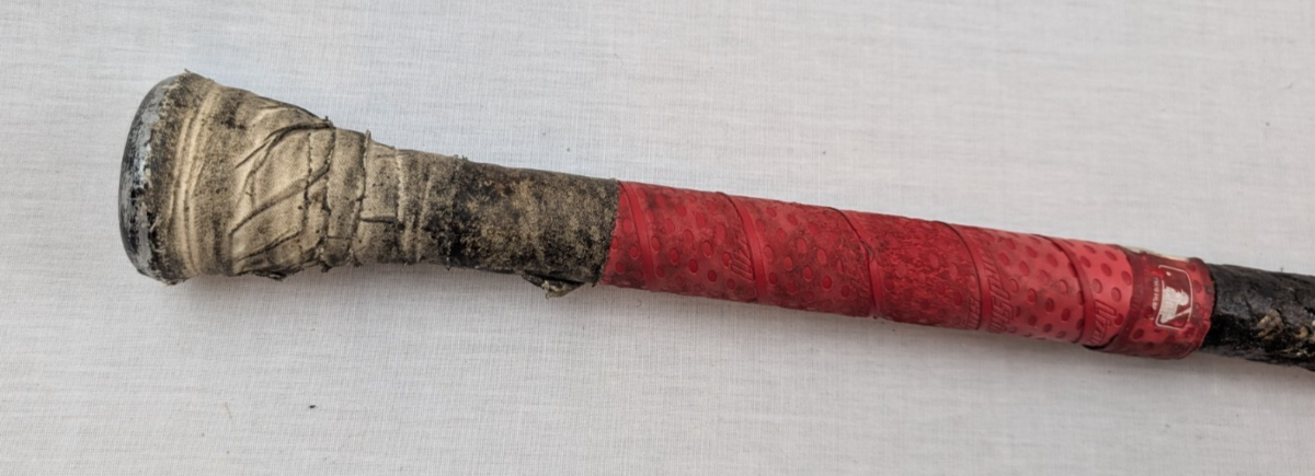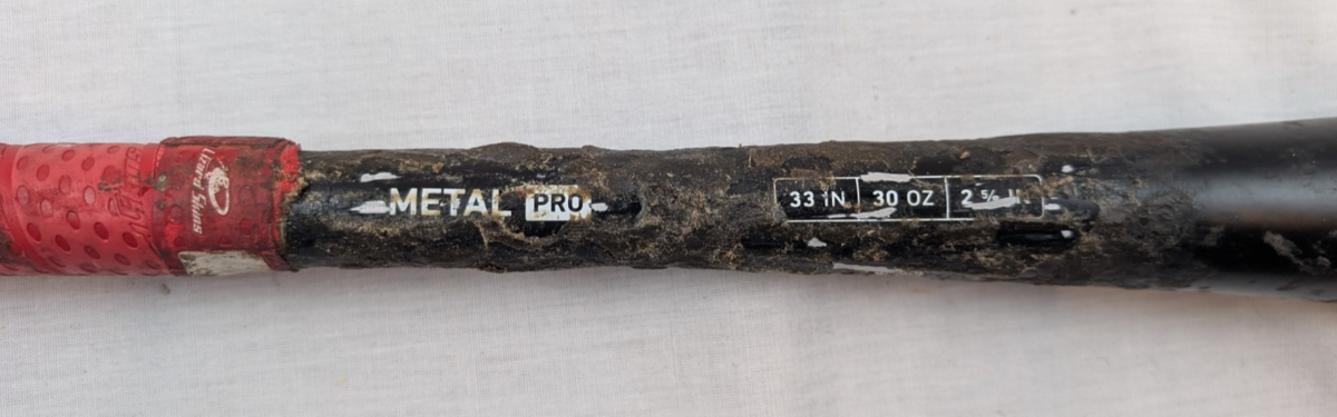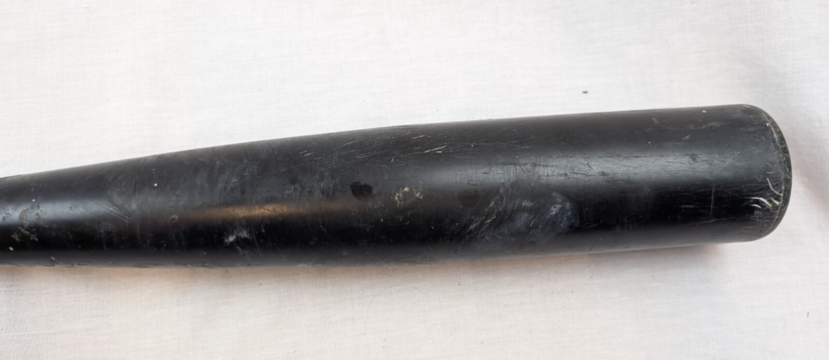 Bat has some scuffs and scrapes from use. Also, previous owner coated several inches after the grip with some pine tar type of sticky resin. I scraped some of it off to see the bat dimensions but you may want to scrape the rest off if it bothers you