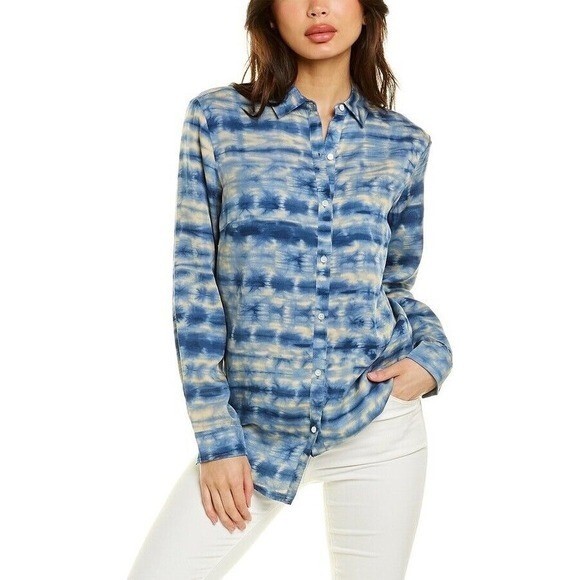 J.McLaughlin Lois Tencel Shirt in Tie Dye in blue tones promotions luxe, Size S