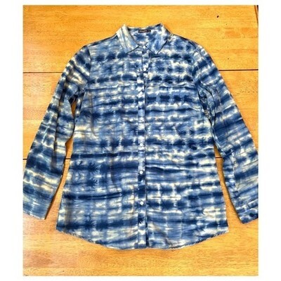 J.McLaughlin Sz S Lois Tencel Shirt in Tie Dye in blue tones promotions luxe