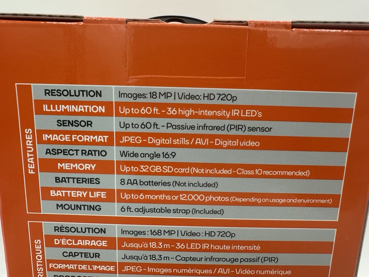 The Terra Extreme 18-Megapixel Infrared Trail Camera from Wildgame Innovations detects movement out to 60 ft. and captures both photo and video (without audio) illuminated by the invisible Lightsout? flash out to the same distance. The fast-to-respond 0.7-second trigger speed ensures you see it all. Images are delivered in a 16:9 format, ideal for viewing on TV and computer screens. Time, date and moon phase stamps. Adjustable tree strap with alligator-style clips included. Cable-lock ready latch (additional security accessories not included). Powered by eight AA batteries (not included). The Terra? Extreme 18 Lightsout? trail camera is an excellent option to cover large properties with multiple cameras. This trail camera features Wildgame Innovations' innovative Lightsout technology at an affordable price. Make sure nothing makes it onto your property without you knowing about it -- and no one knows you're watching -- with the Terra Extreme 18 Lightsout, by Wildgame Innovations.