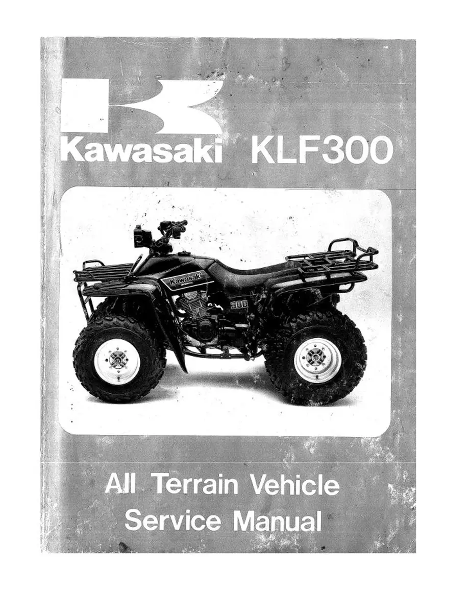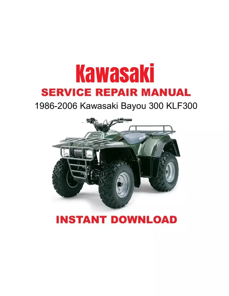 This manual includes model years 1986-2006 for the Kawasaki Bayou 300 KLF300 ATV including the 4X4 models. This service manual is the most up to date version and 2 supplemental manuals are included to cover all years and models from 1986-2006 (See Photos). This manual would be used by a technician at a shop.